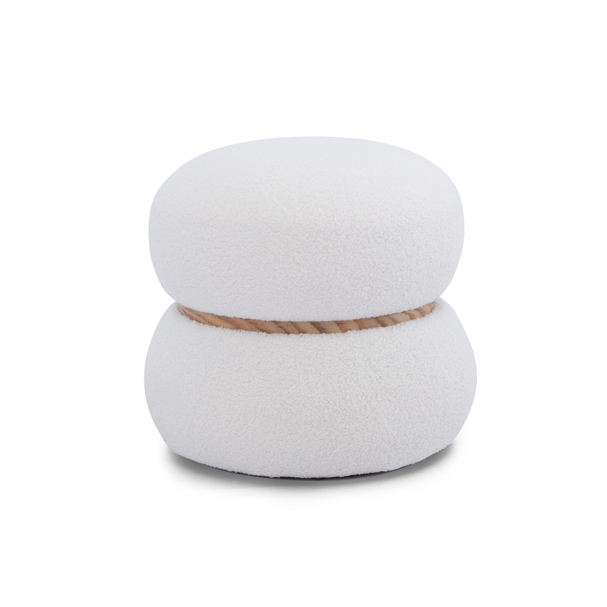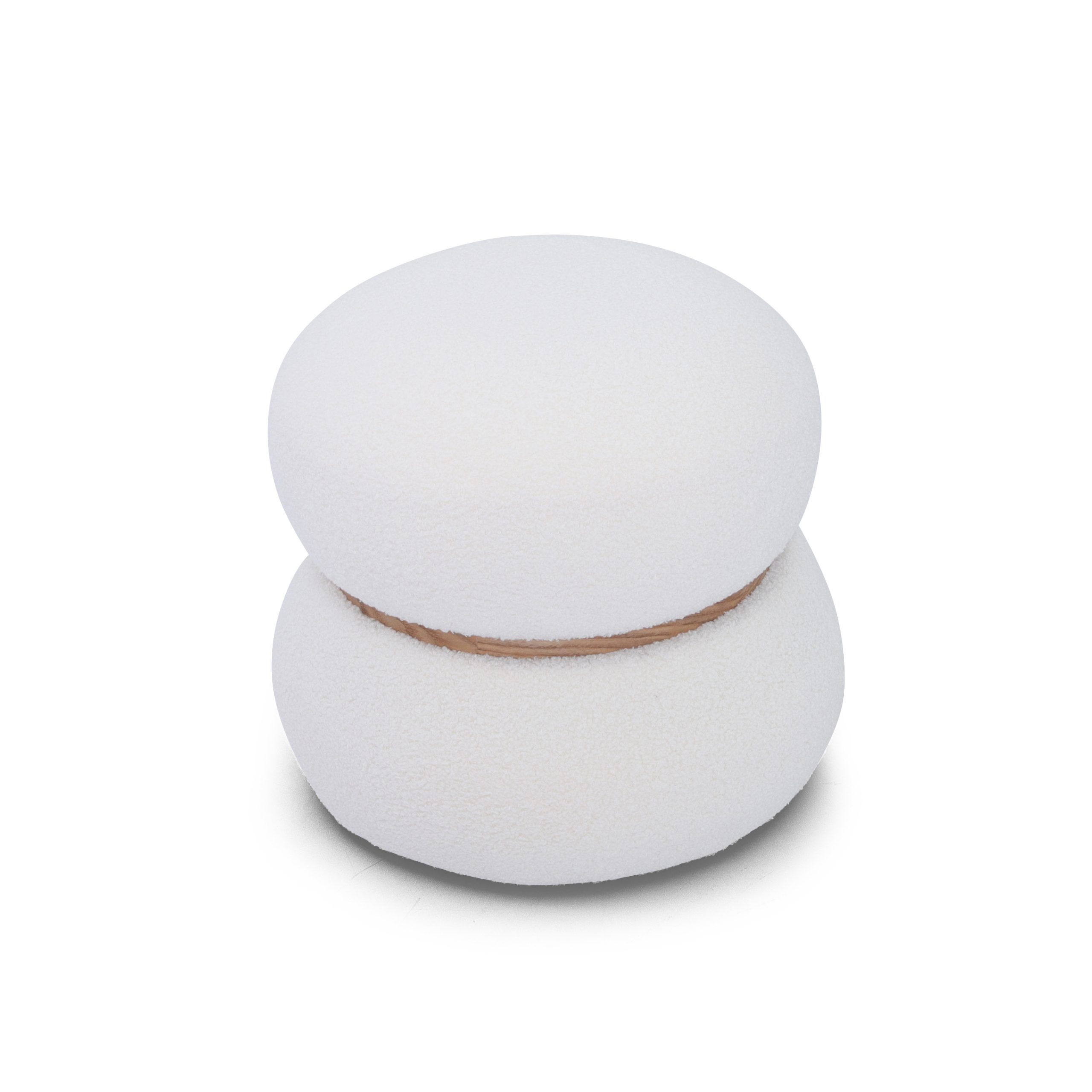 Designed for ultimate comfort and aesthetic harmony, this pouf features a fully upholstered base in the same off-white wool-effect fabric, creating a unified, sleek appearance. Its gentle curves and plush texture make it an ideal piece for lounging, serving as a versatile accent in any room.