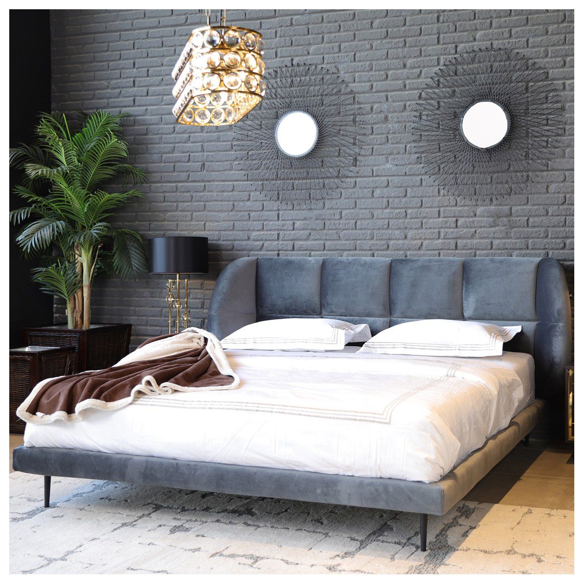Add a luxurious statement to your bedroom with the stunning bed frame, beautifully upholstered in velvet featuring a high winged headboard.