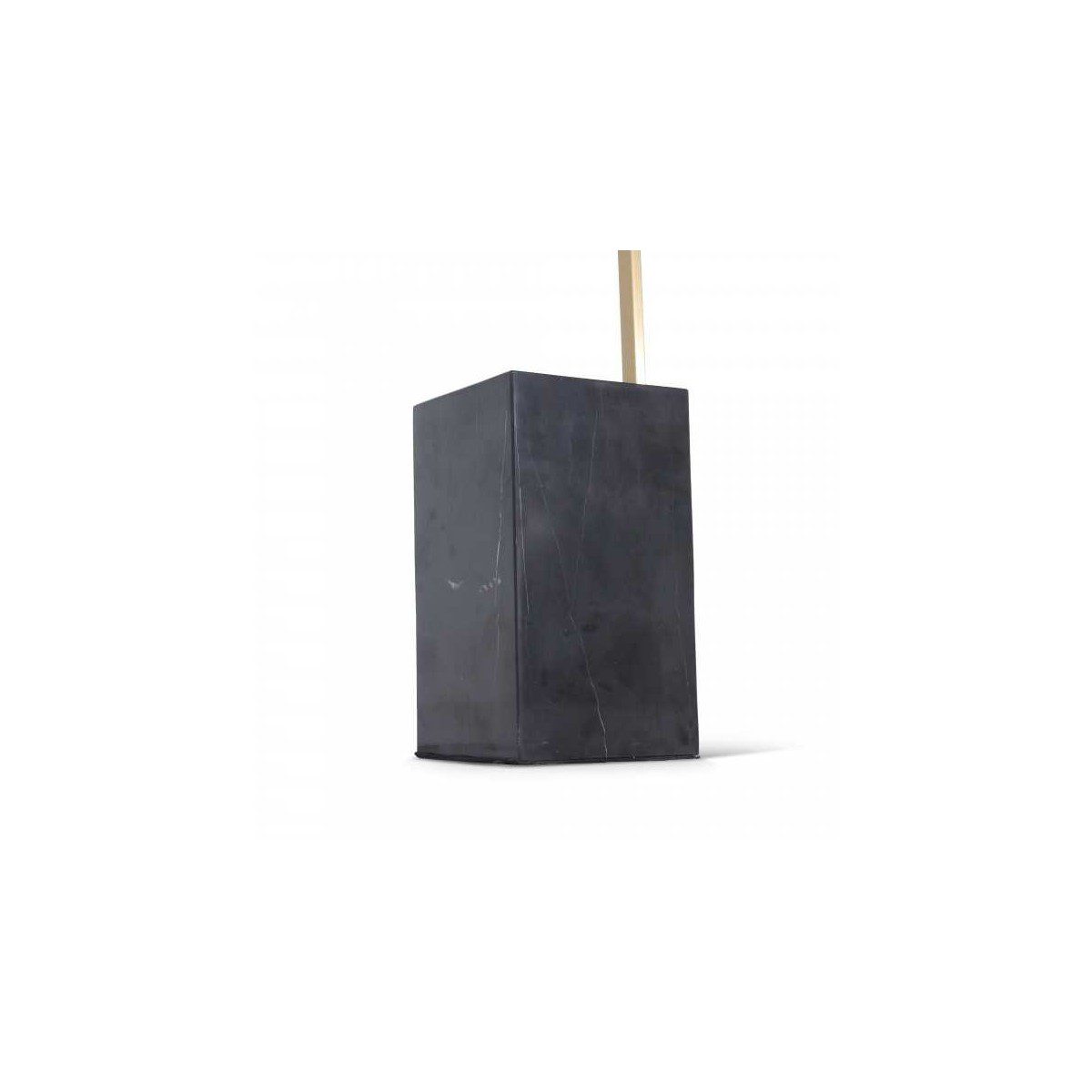 مصباح أرضي LED منحني كبير بقاعدة رخامية سوداء أنيقة.