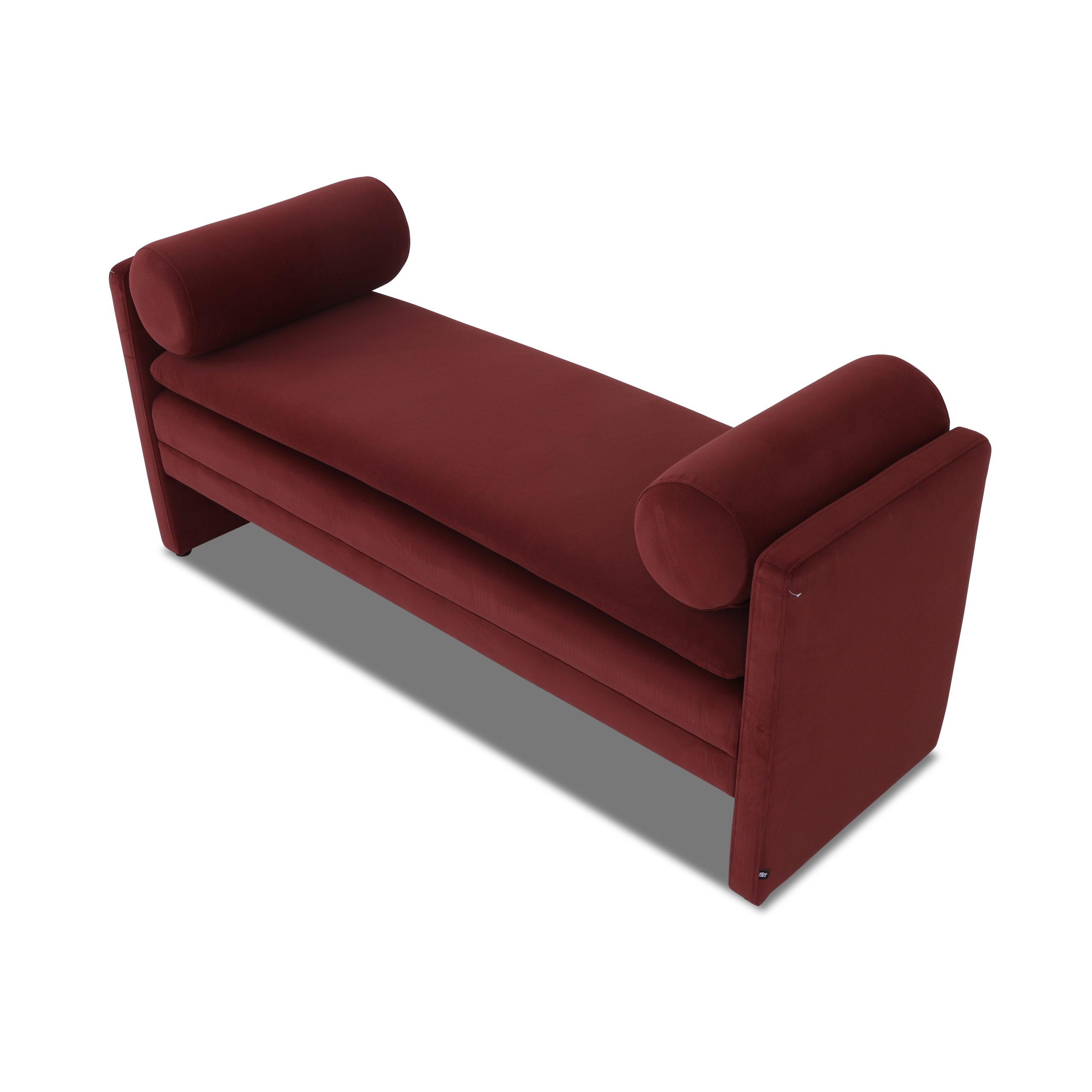 This bench combines the warmth of burgundy with the plushness of velvet, creating a statement piece that seamlessly merges sophistication with coziness.