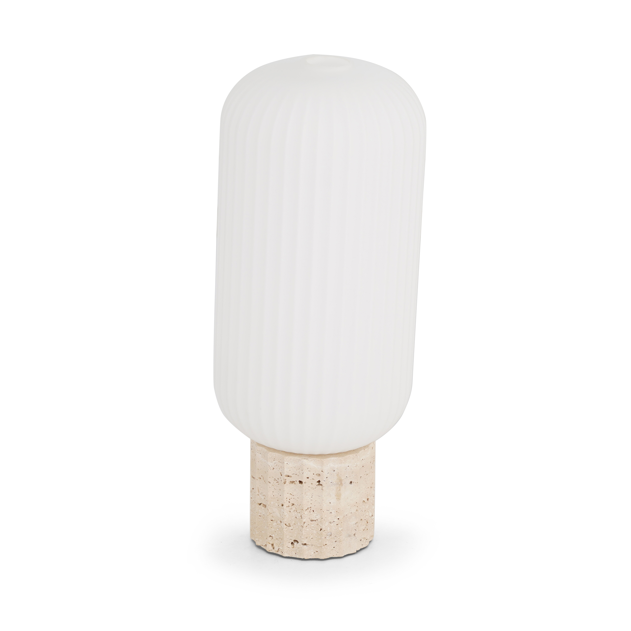 Beige travertine table lamp with natural stone elegance.