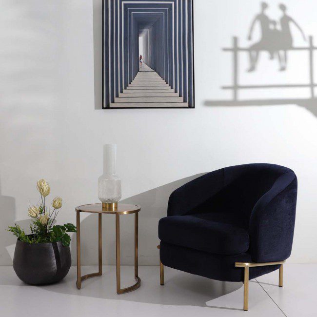 Step into a realm of refined elegance where opulent comfort meets timeless style in a rich, dark blue hue.