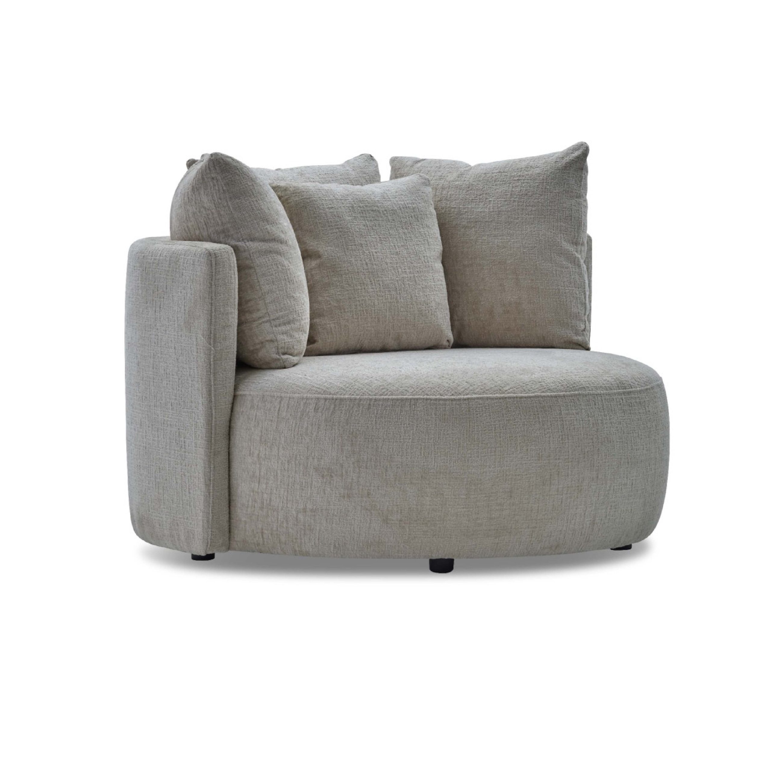 Round armchair with plush cushions.