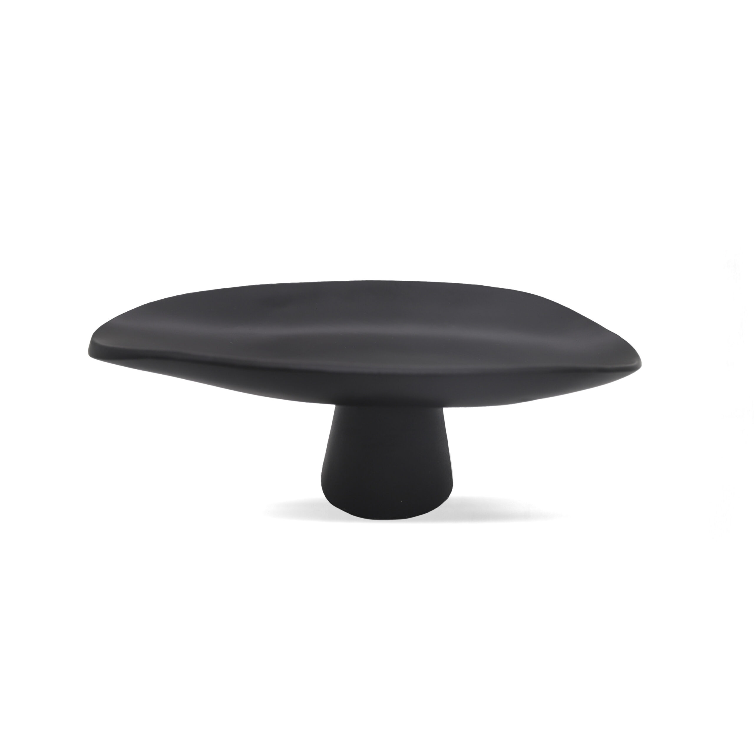 Organic black ceramic tray with stand, a minimalist and sculptural accent piece.