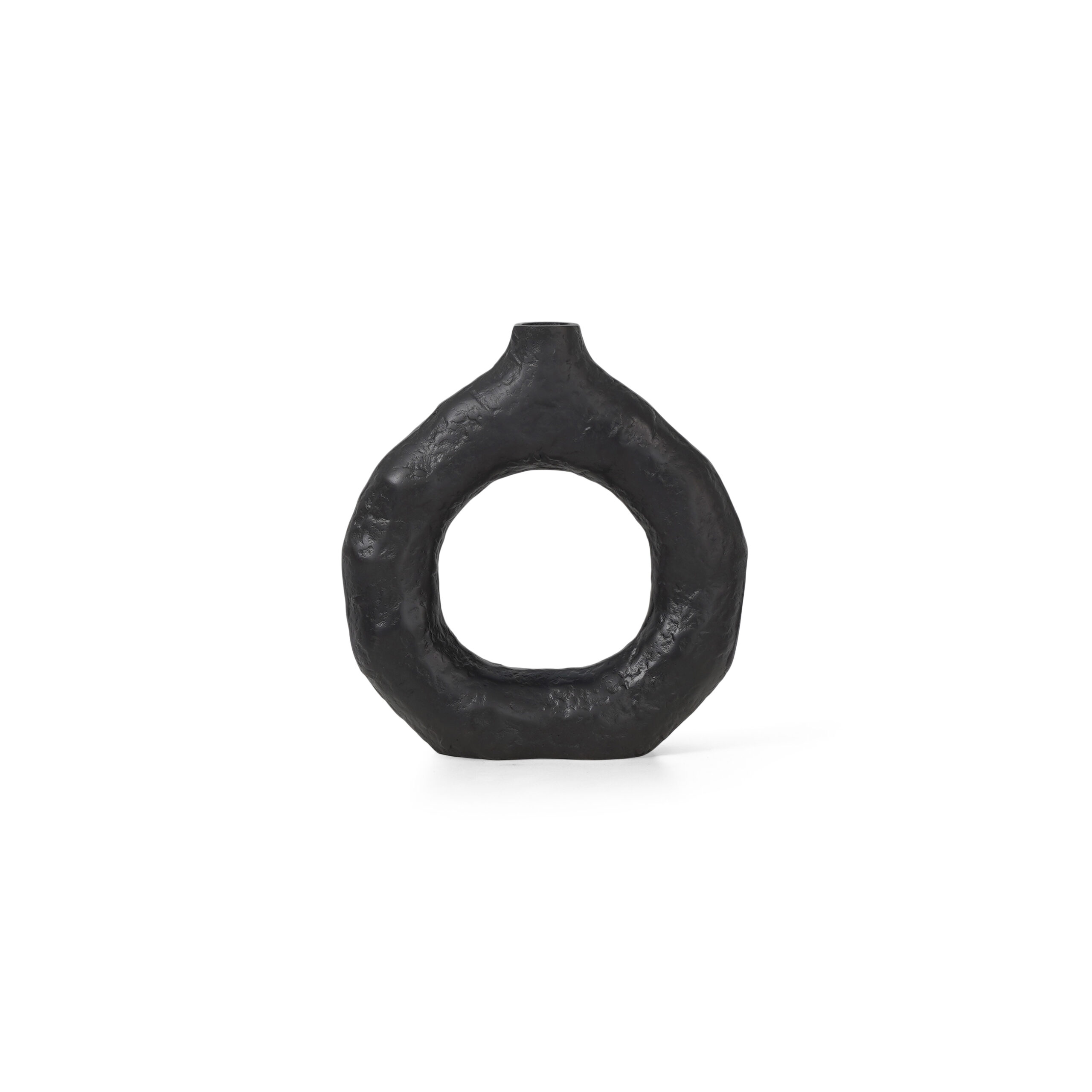 Burnished black round metal vase