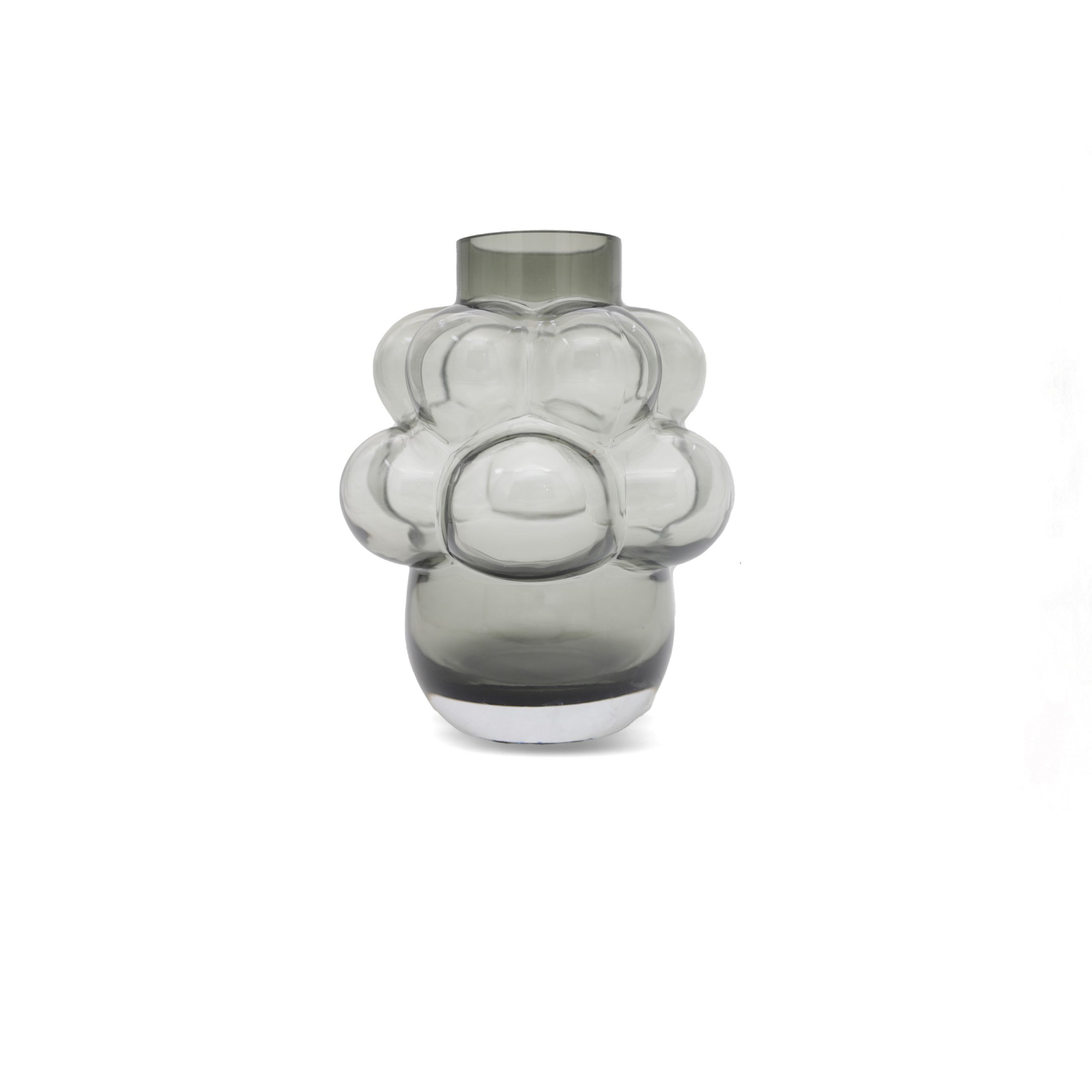 Smoked glass vase with a bubbly texture, a playful yet sophisticated statement piece.