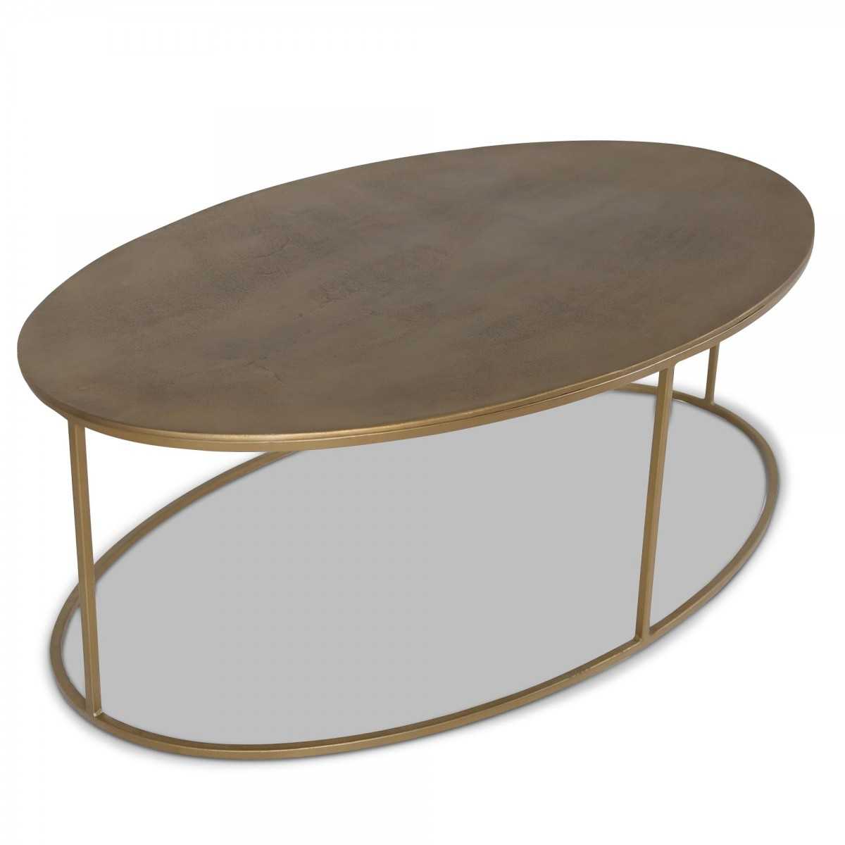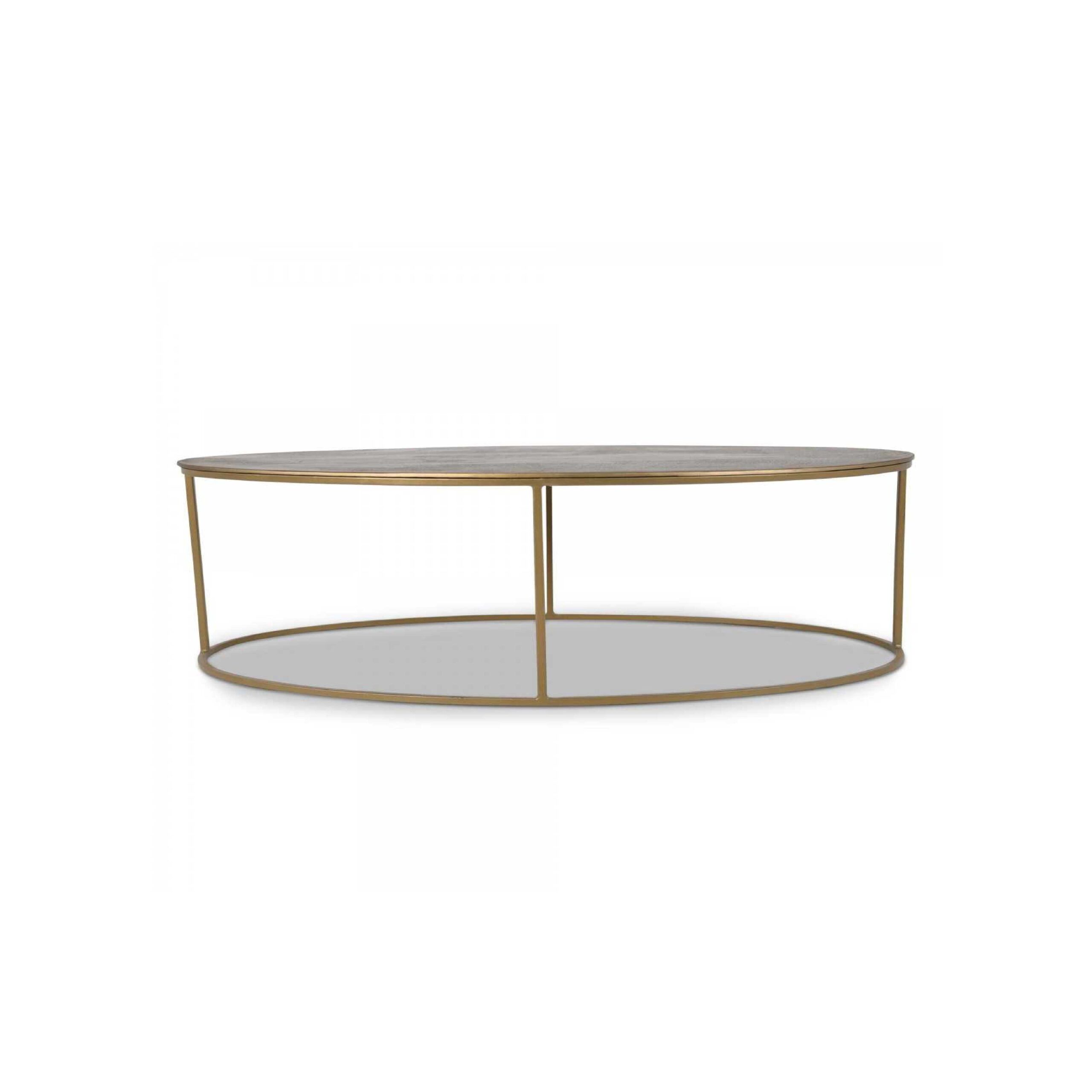 Crafted with a soft gold base and a striking oval top, this coffee table adds a unique allure to living spaces.