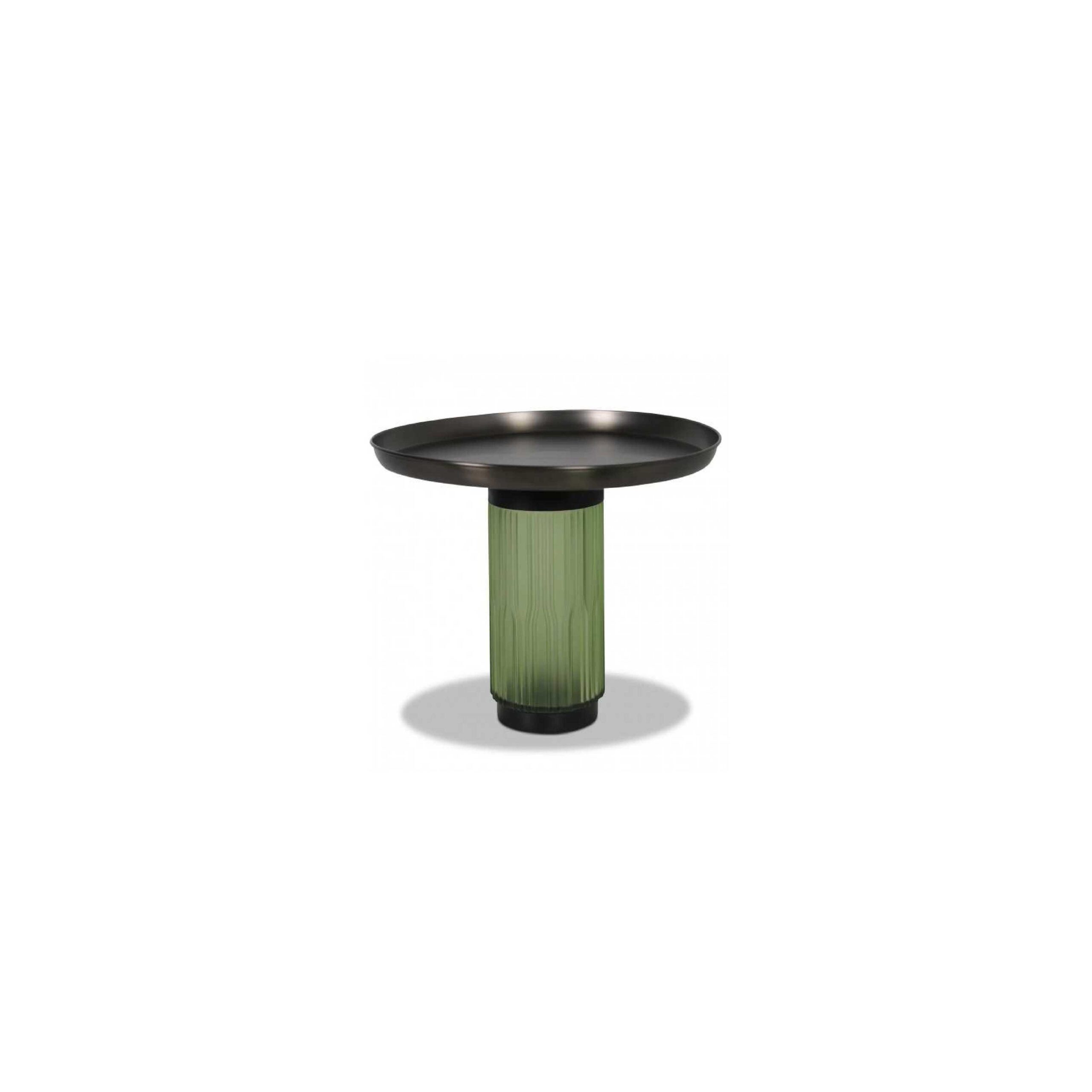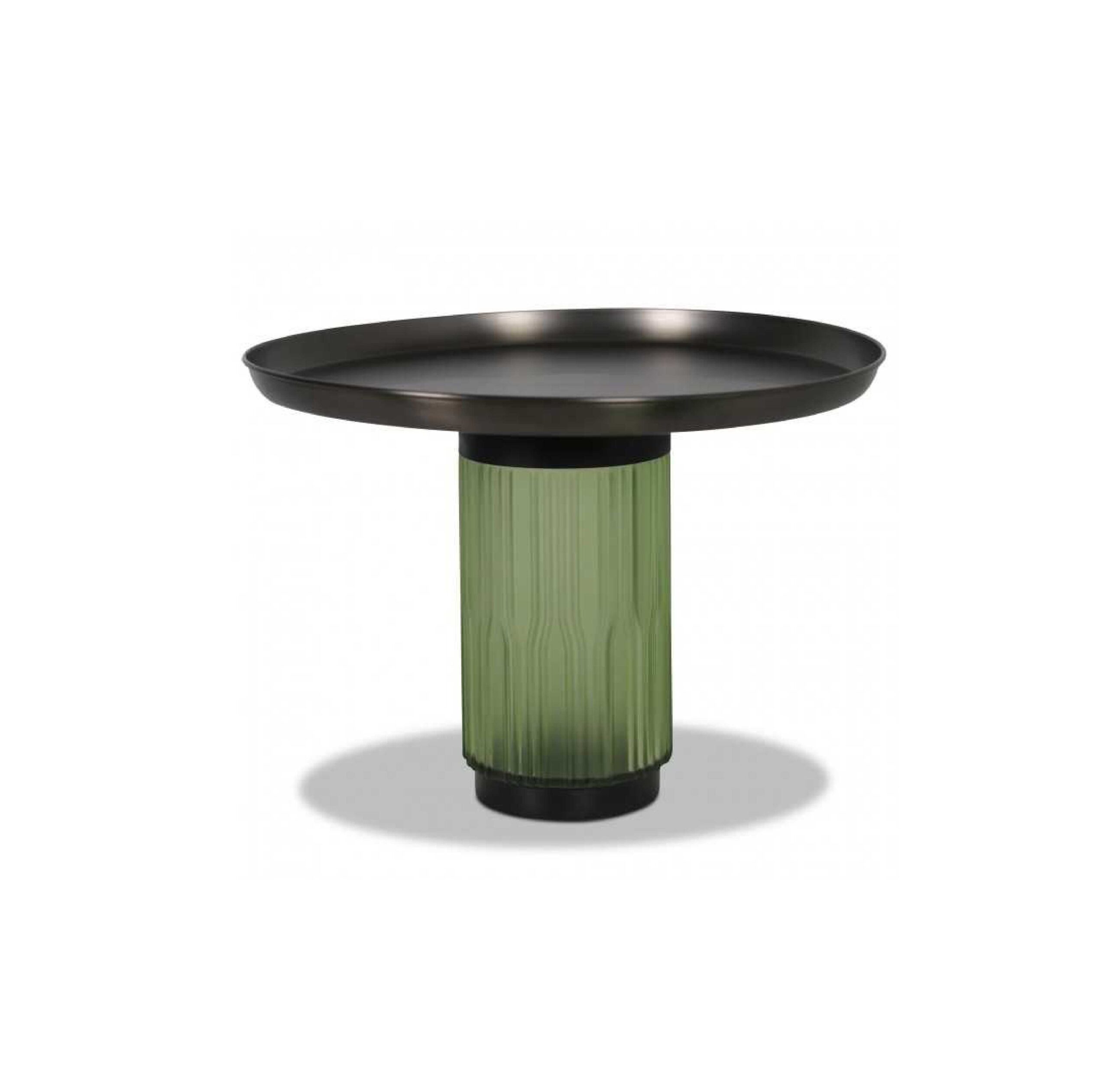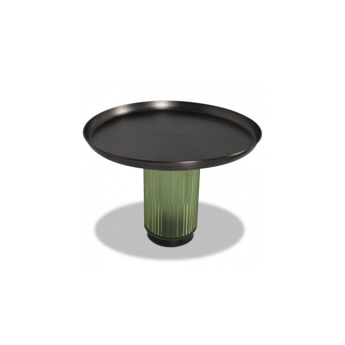Purposeful and confident, the table boasts a gunmetal finish with a round tabletop.