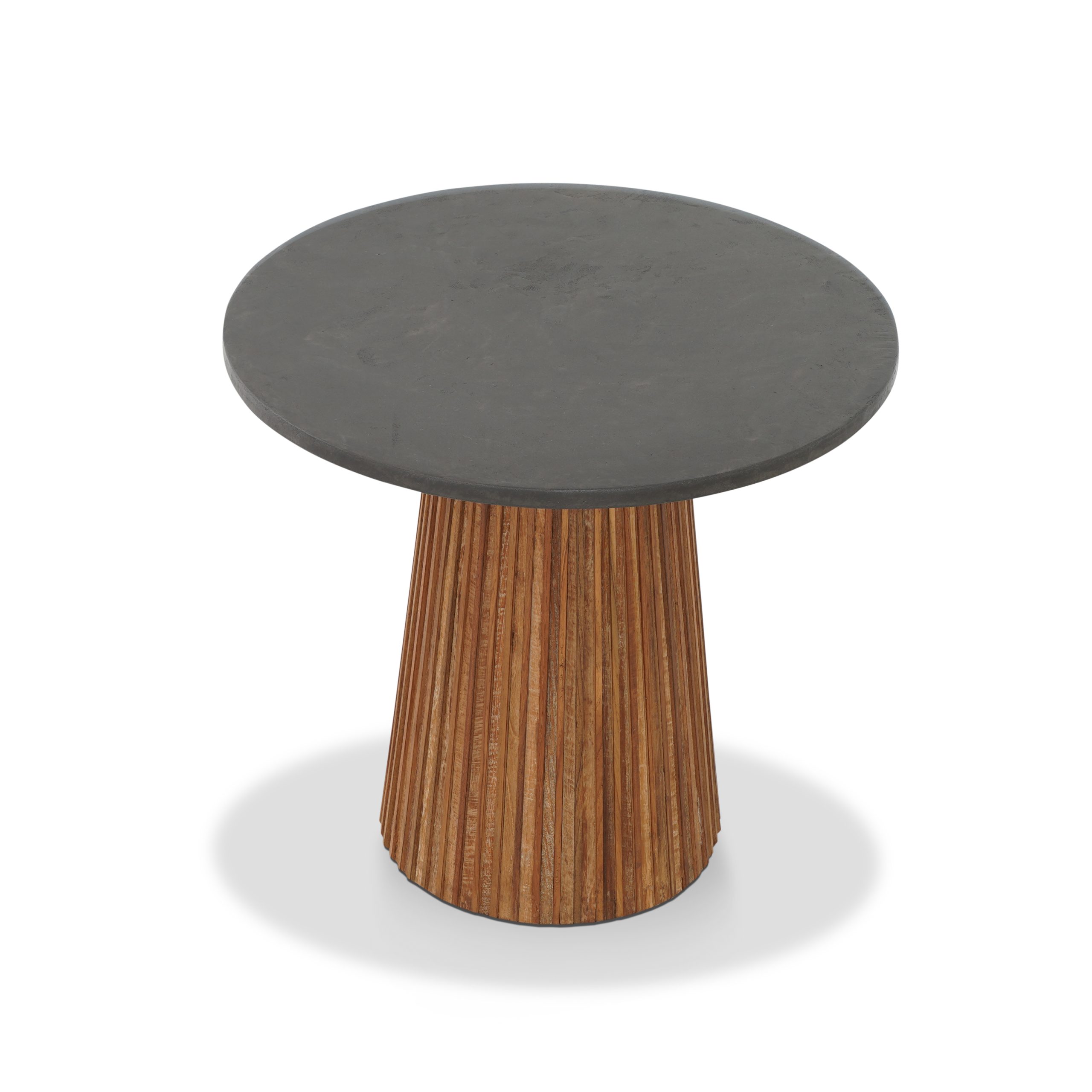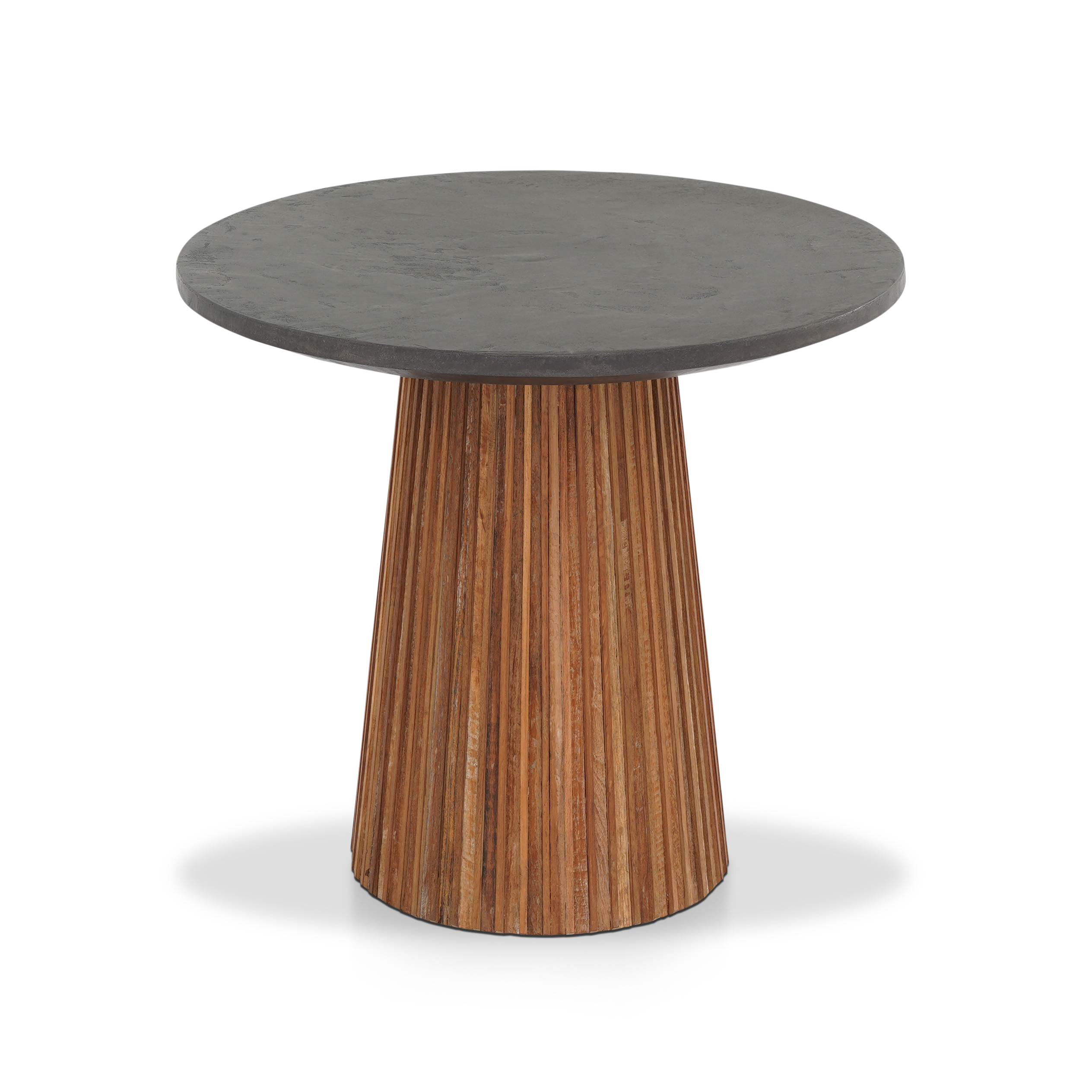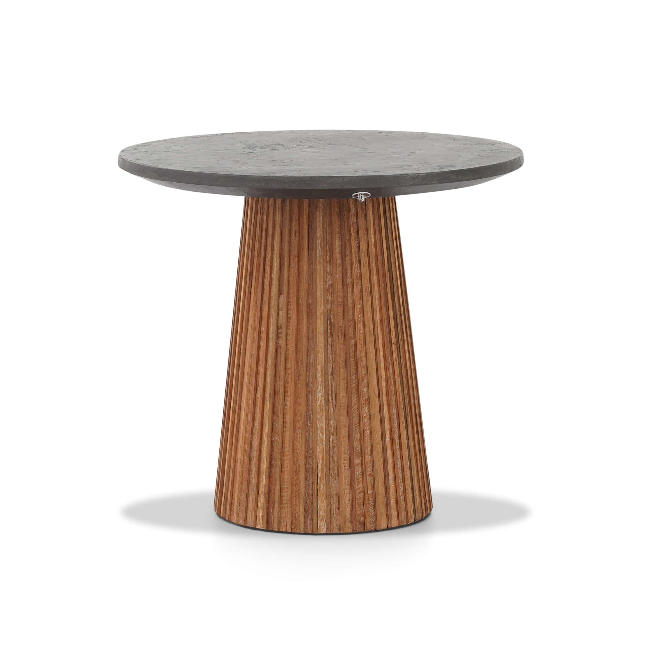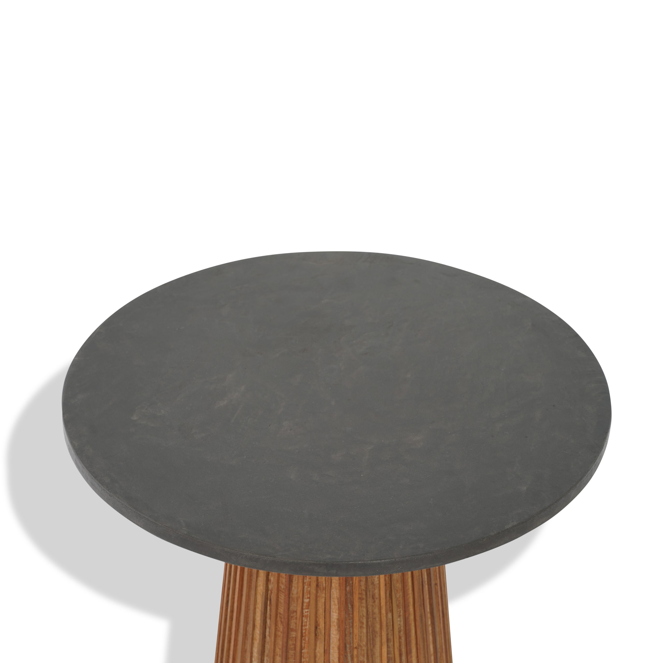 Bold black concrete paired with dark walnut wood stripes creates a striking contrast of industrial edge and natural warmth. Modern strength meets timeless craftsmanship.