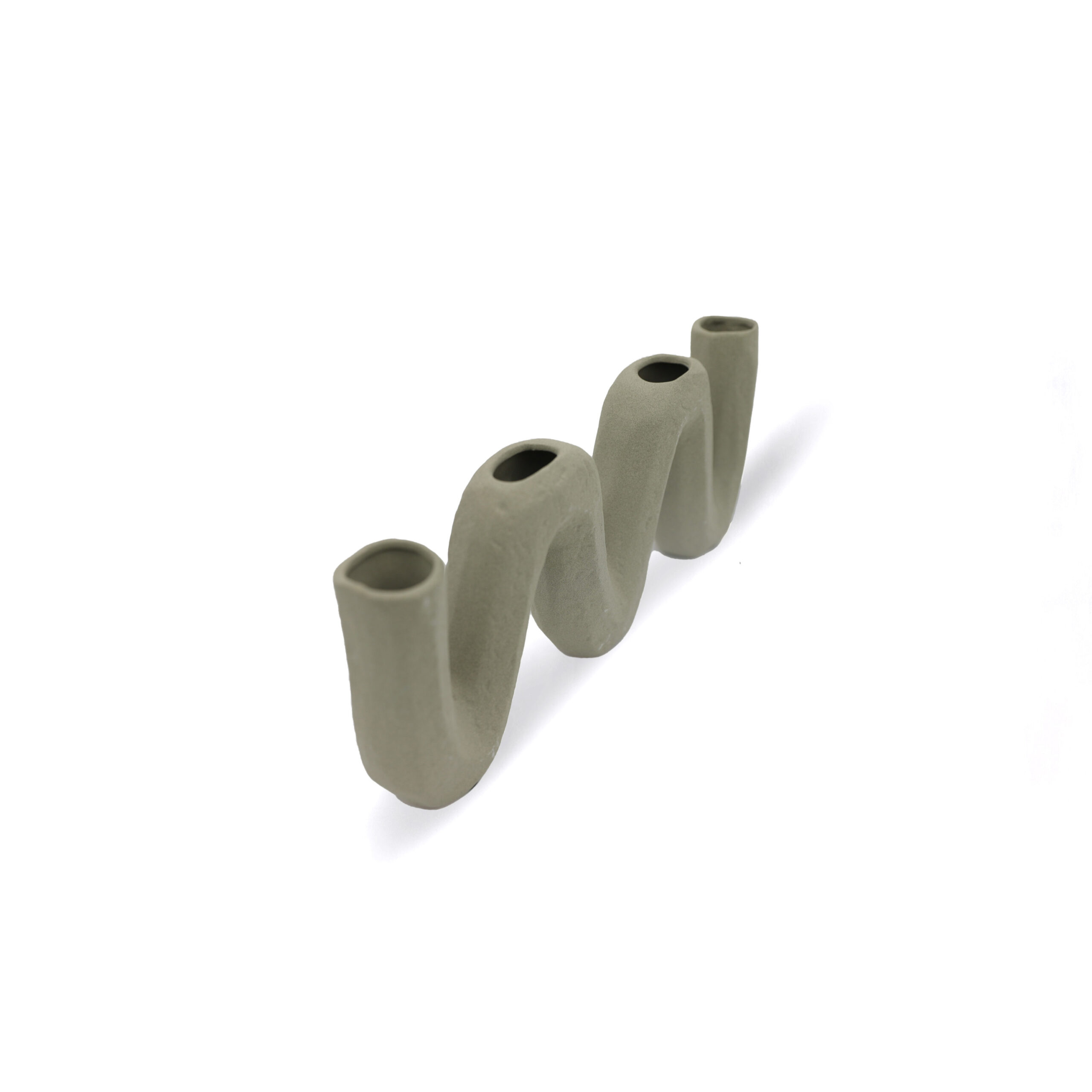 A continuous wavy form defines this ceramic candle holder, featuring a matte textured finish and multiple openings that create a playful, modern sculptural appeal.