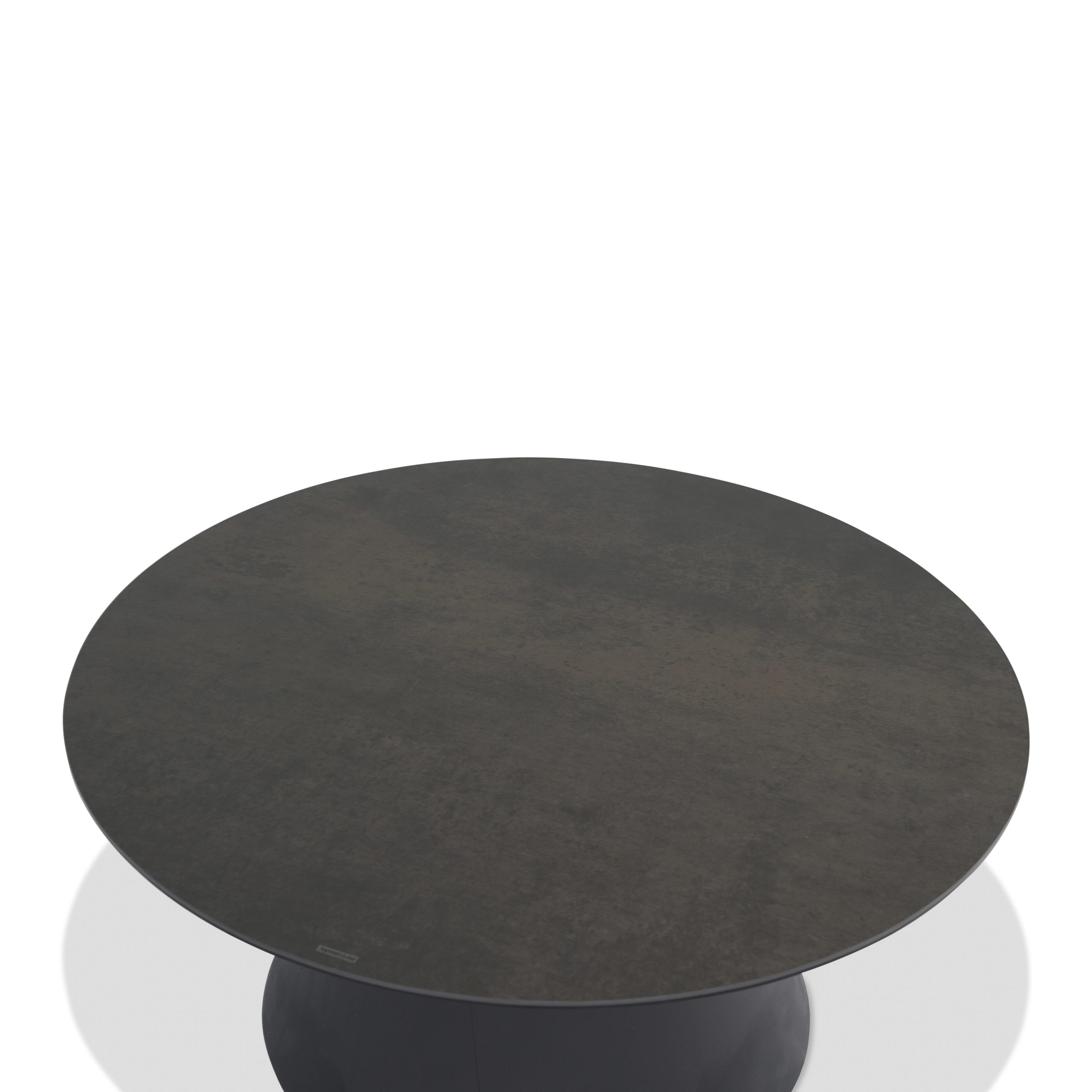 Durable sintered stone surface with a sleek black metal base. Heat resistant and effortlessly stylish.