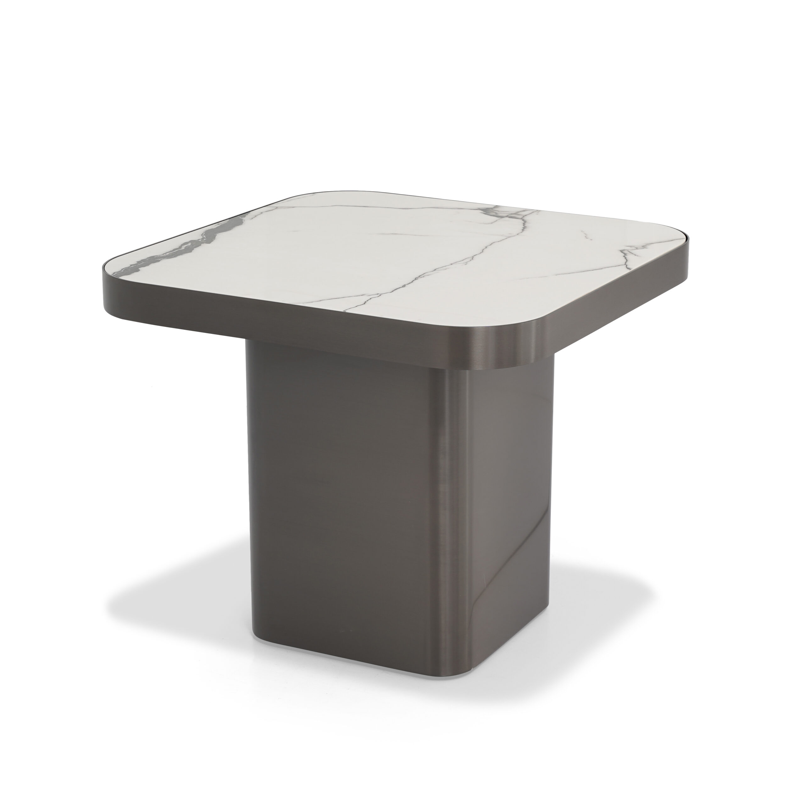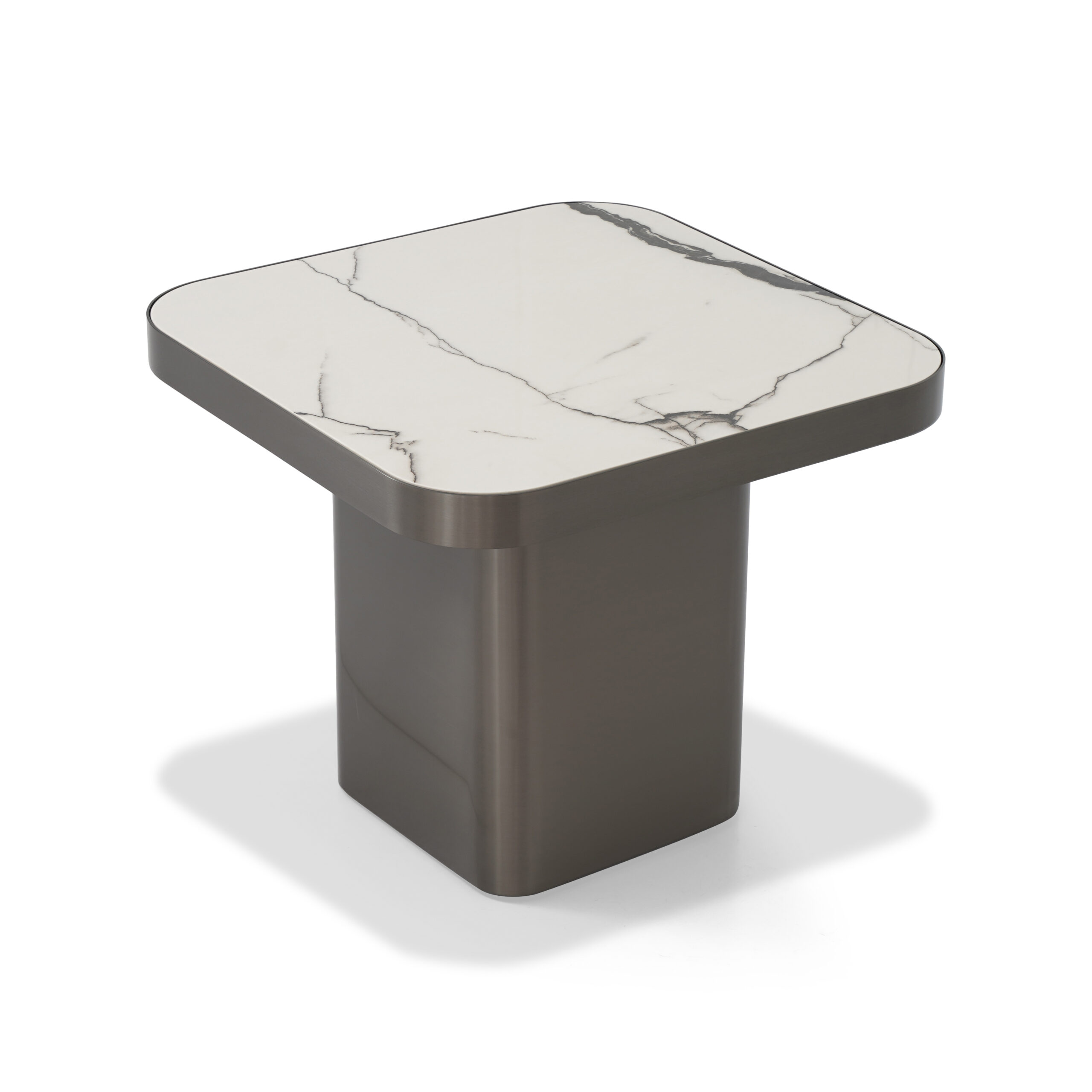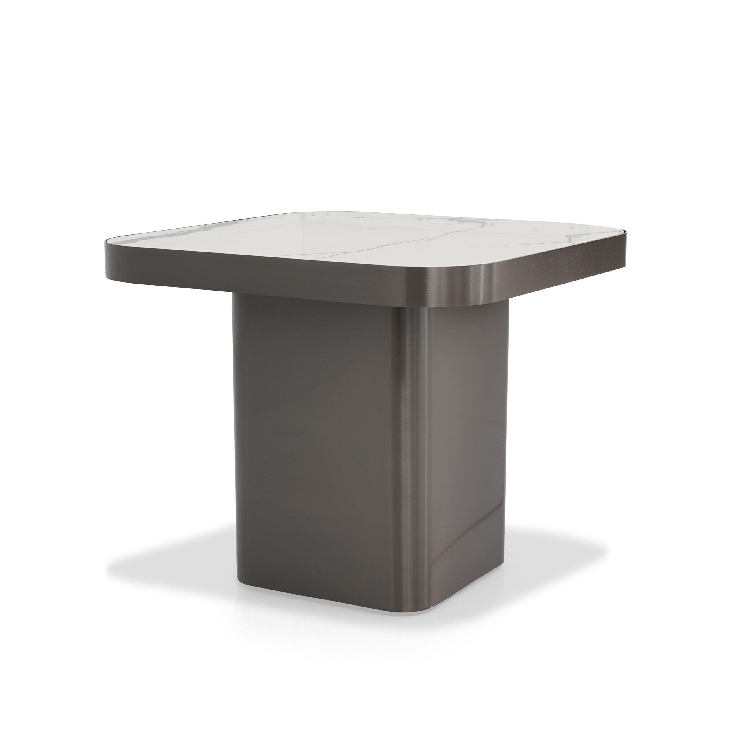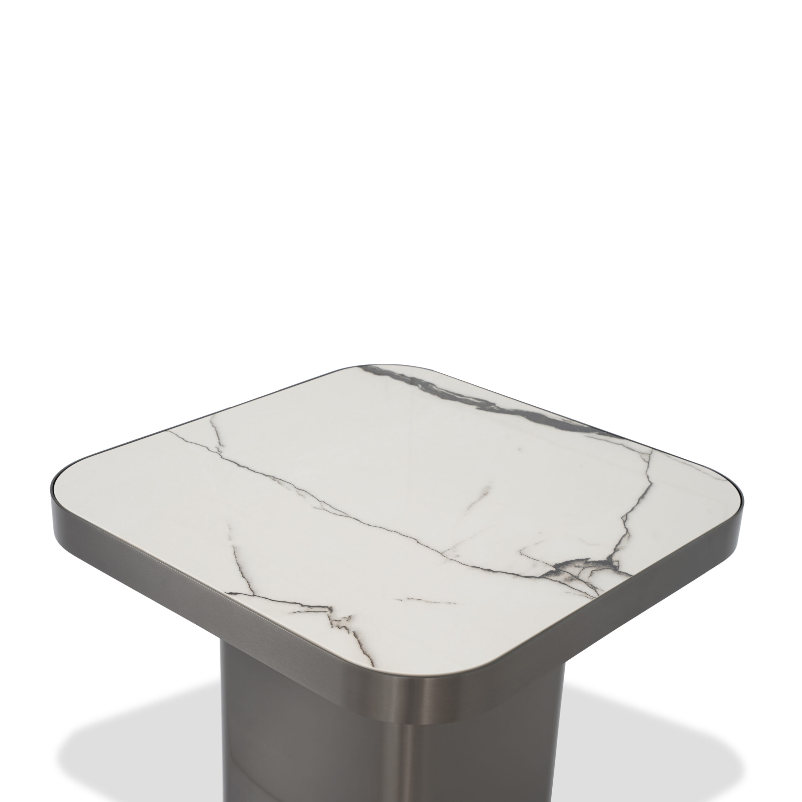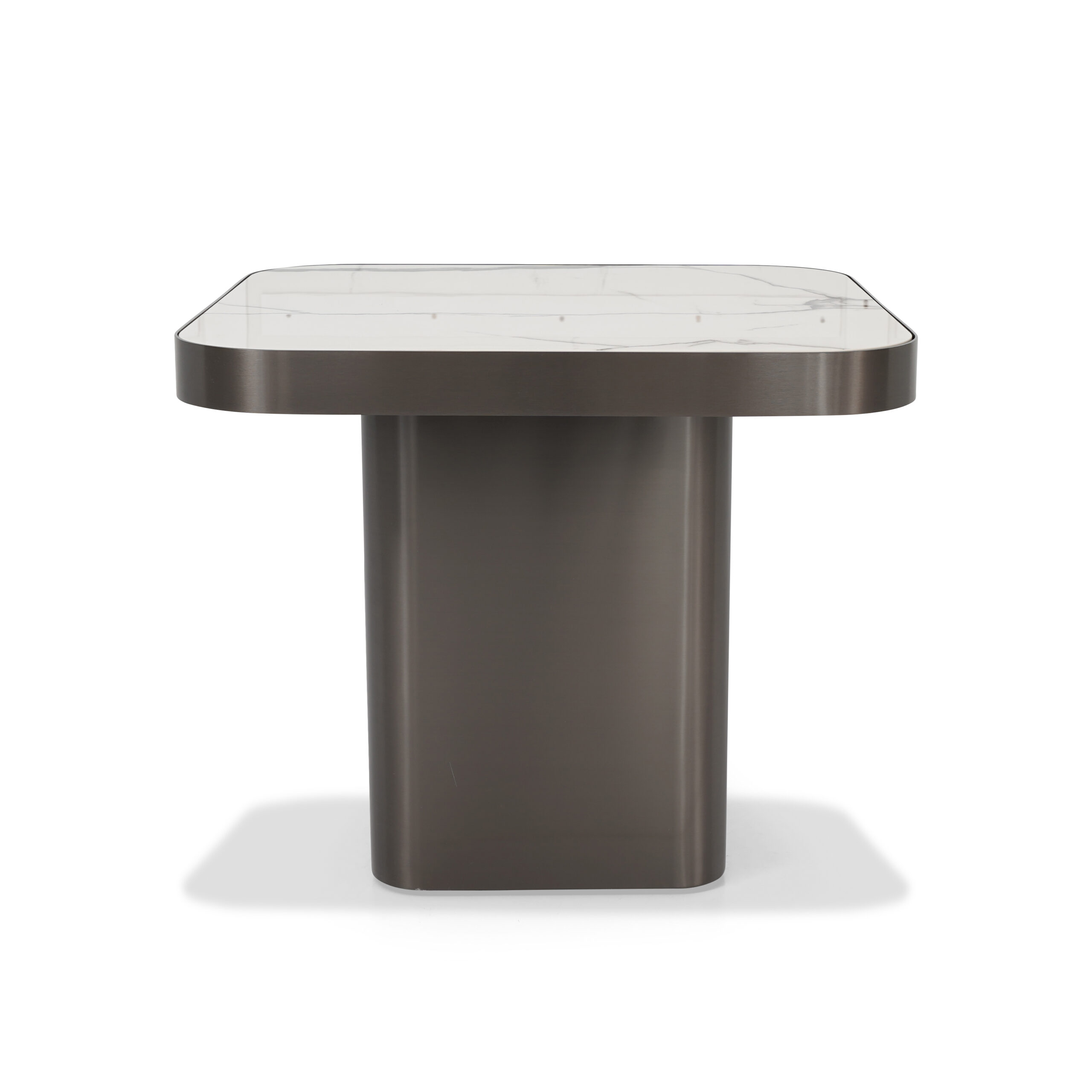 A minimalist masterpiece. Pure, serene surfaces paired with a dark, contrasting base offer a luminous and grounding focal point.