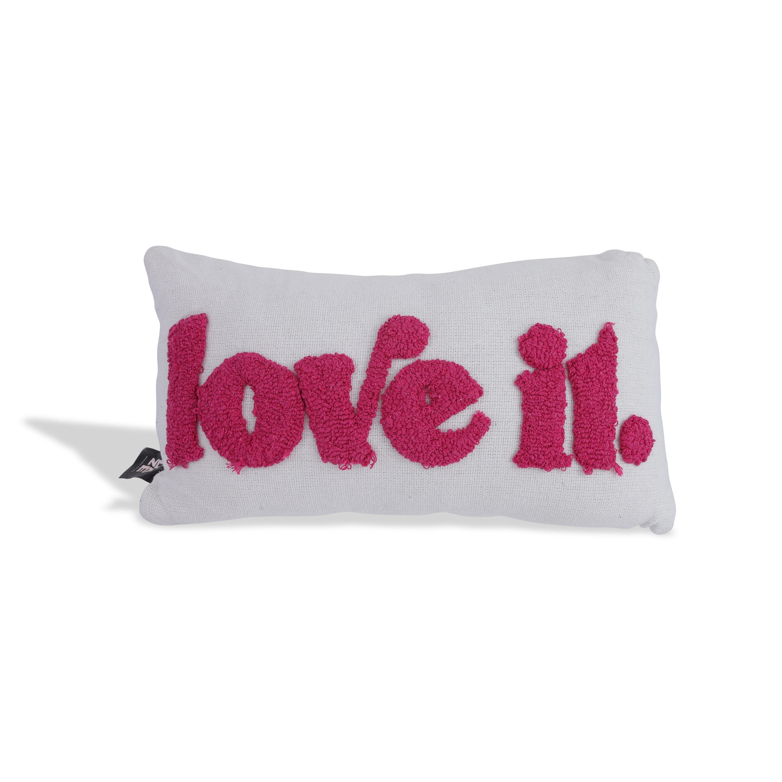 Cushion with woven pink color quote
