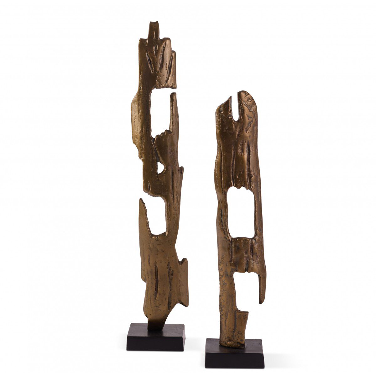 This decorative accent features a shiny gold aluminum design mounted on a silver metal base.