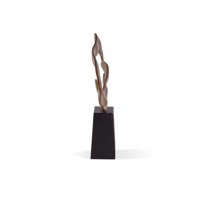 Looking for an eye-catching accent piece? This rustic bronze sculpture with a rich, textured finish sits perfectly on a sleek black powder-coated base.