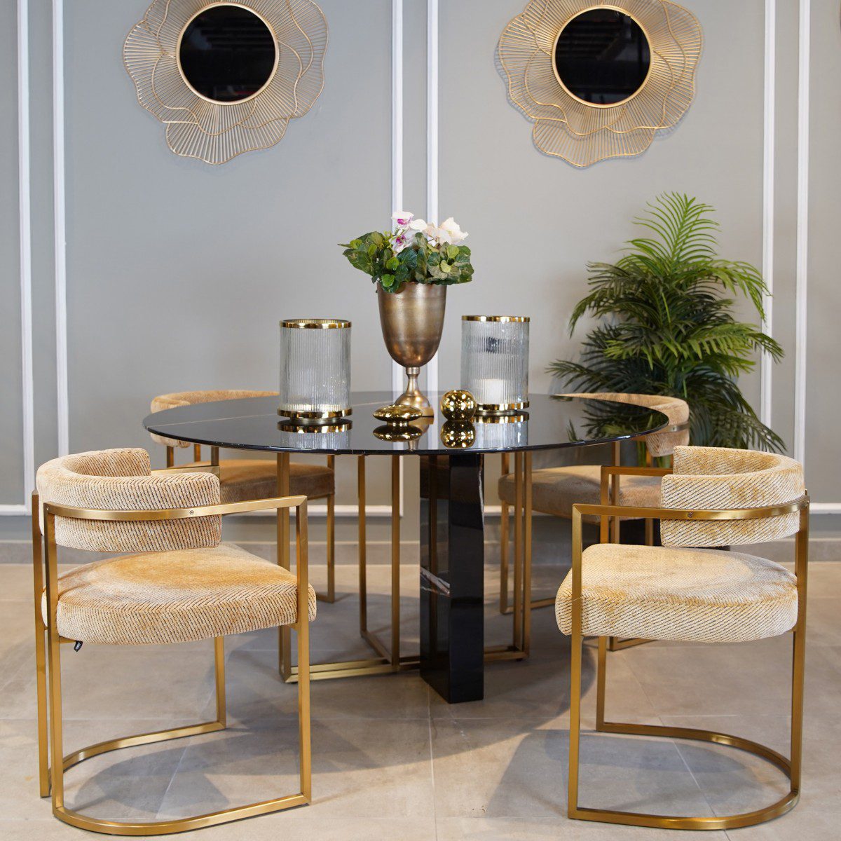 This round dining table is designed with beautiful hallways and elegant entrances in mind, creating a stunning way perfect for decorating with accessories.