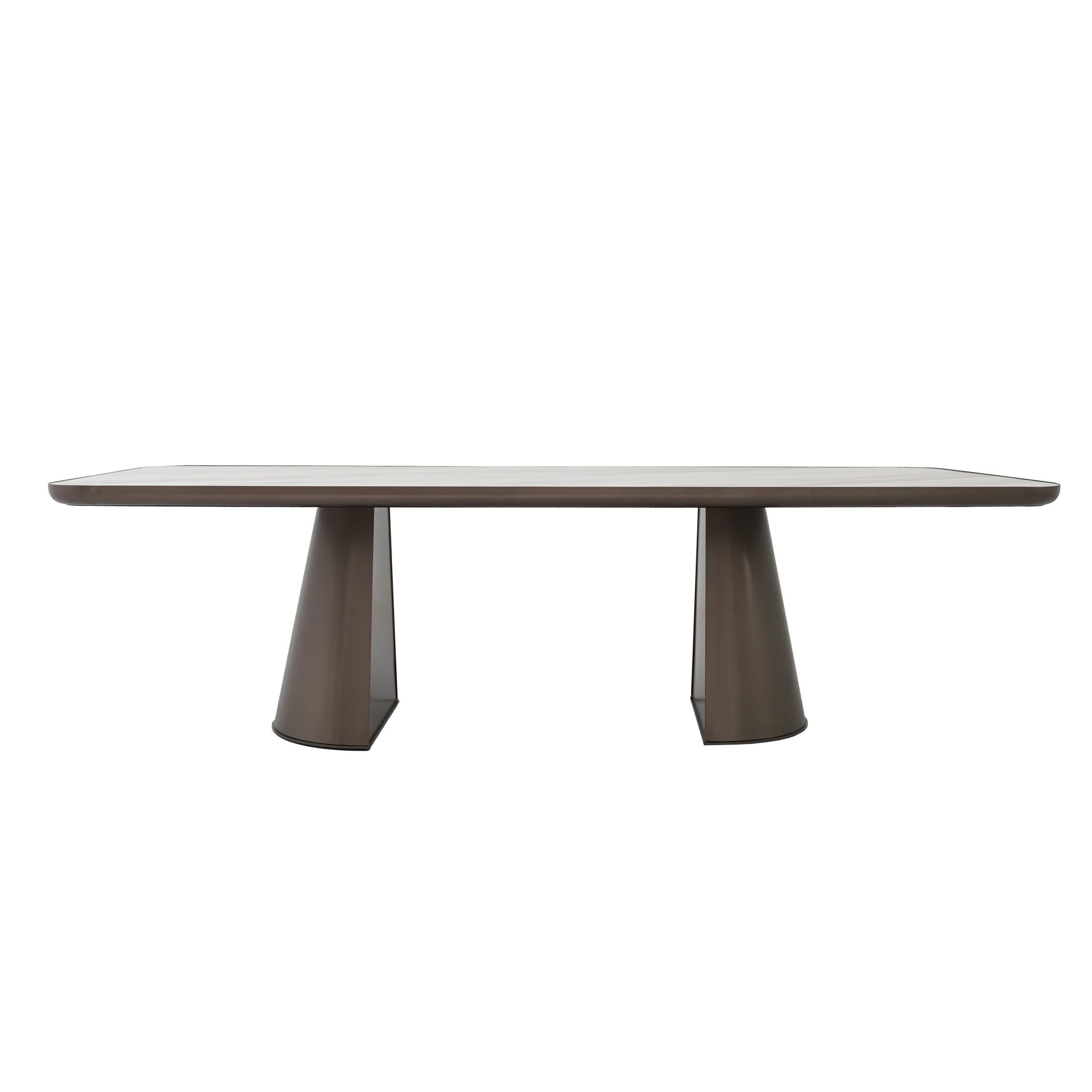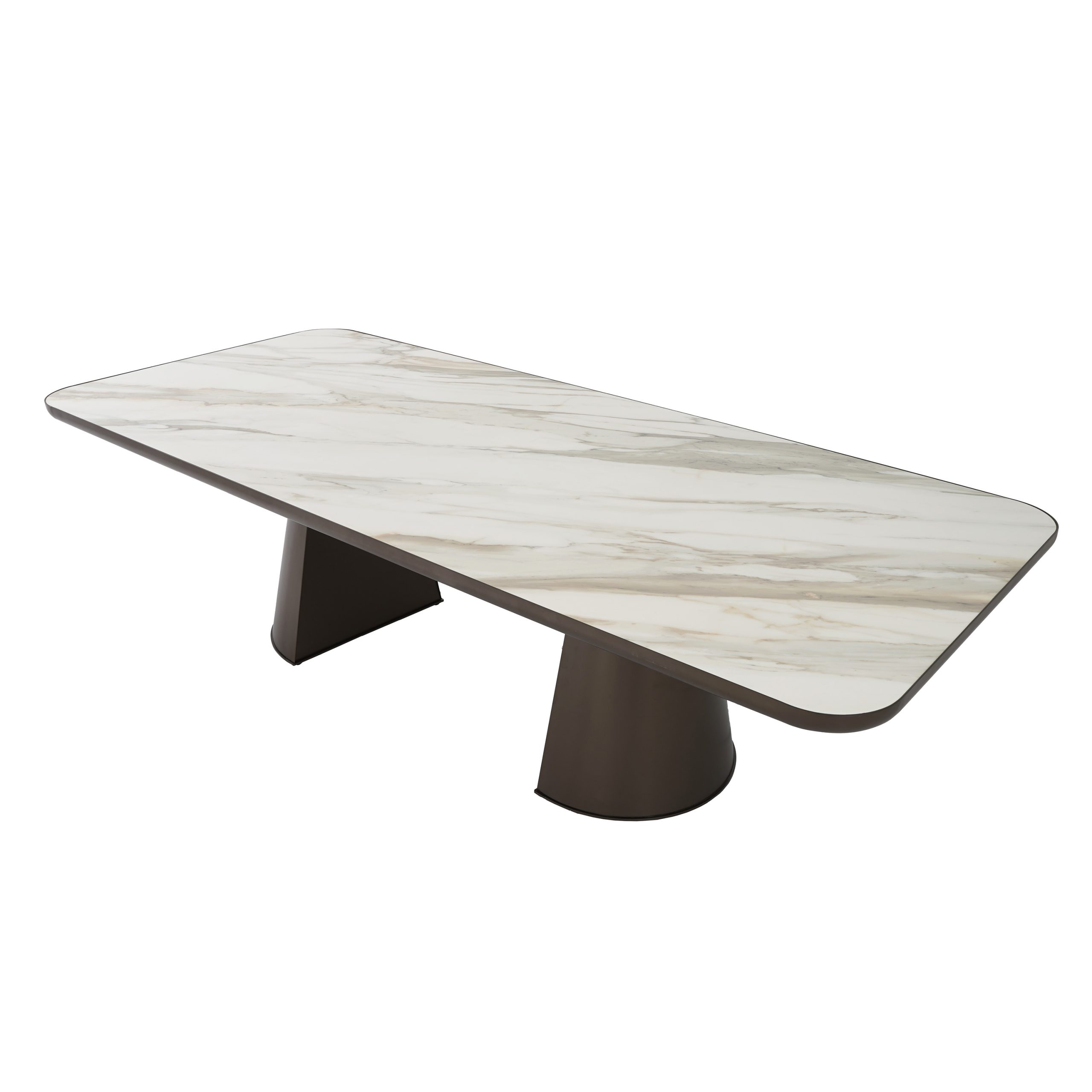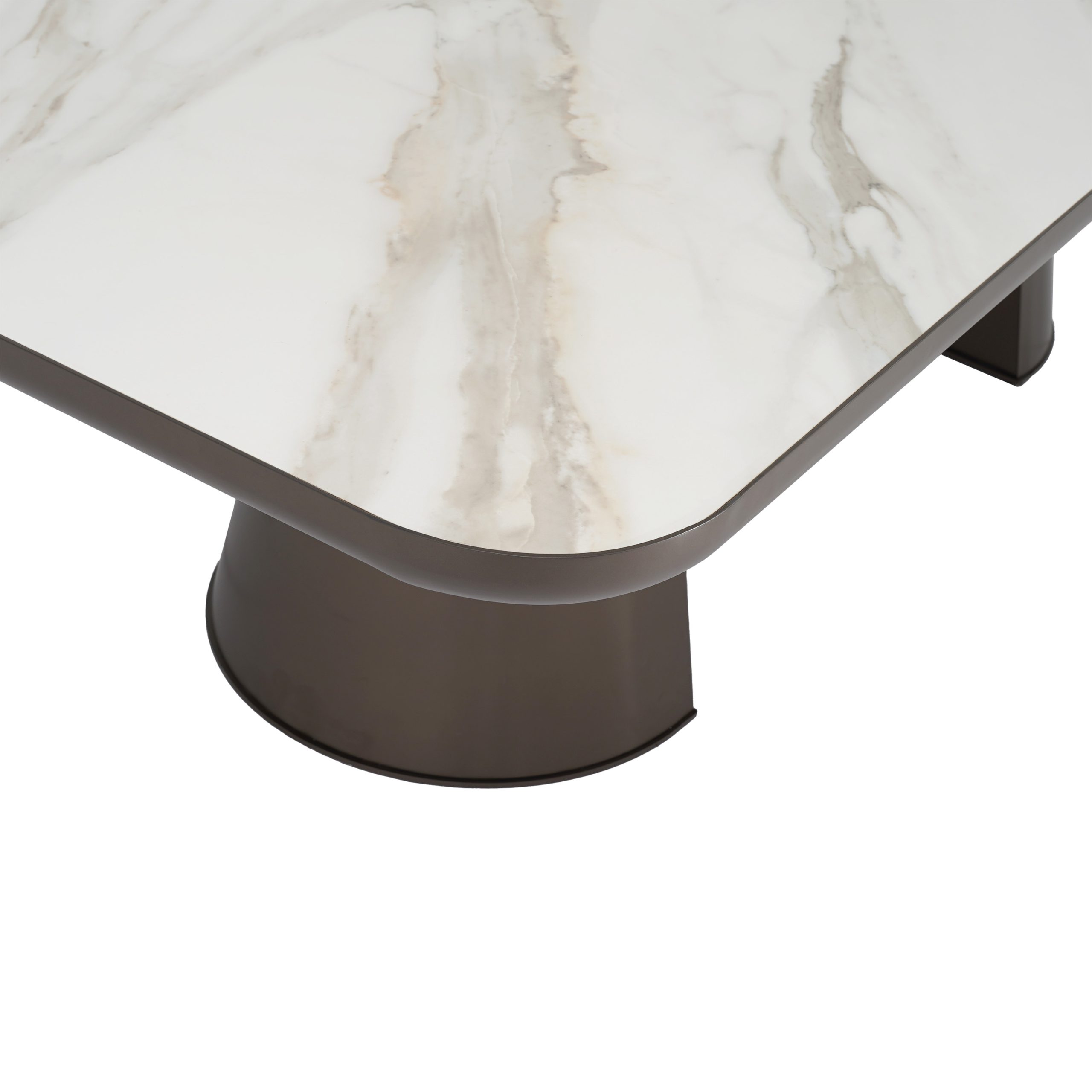 Discover the perfect blend of style and sophistication with a sleek white ceramic top and a bold brushed bronze base