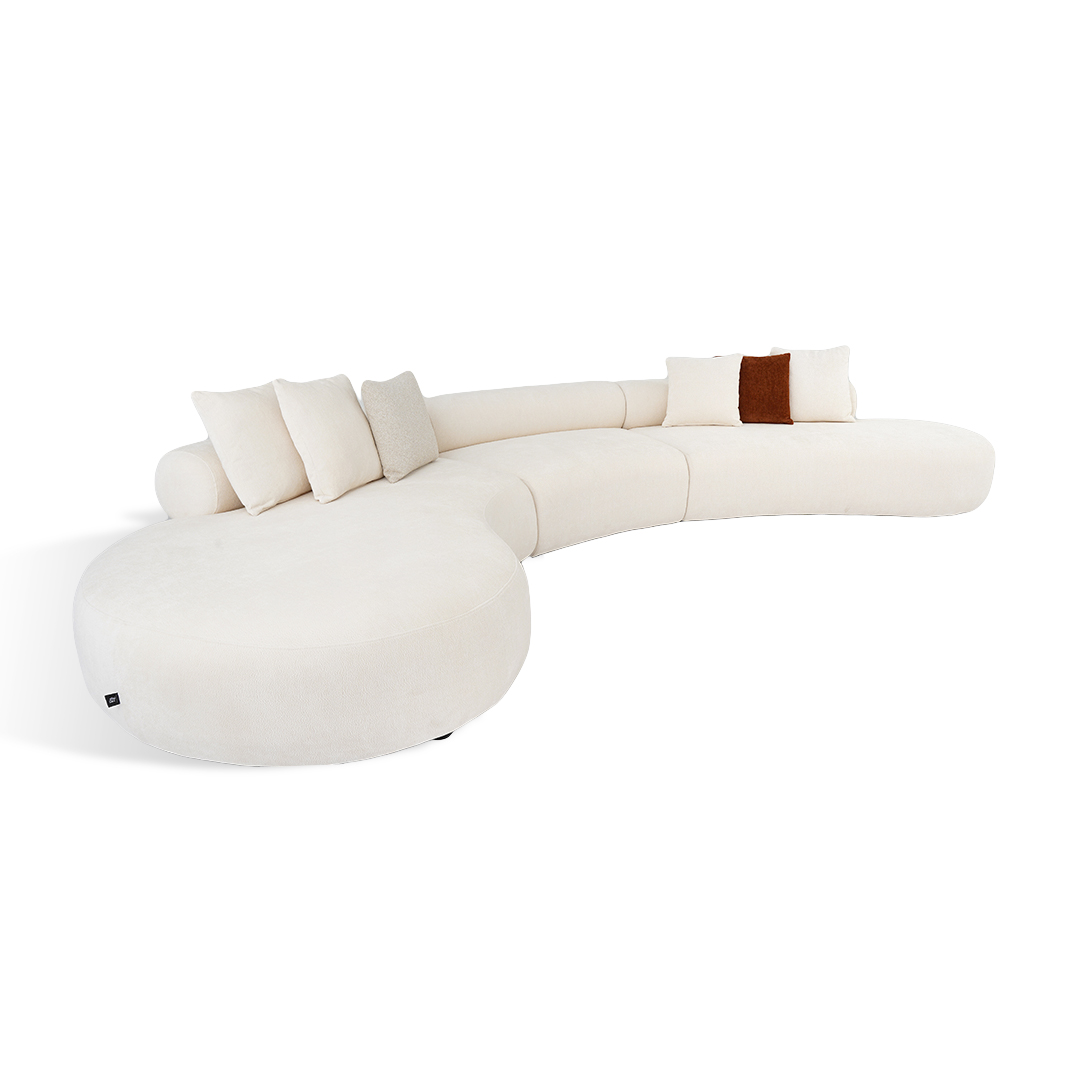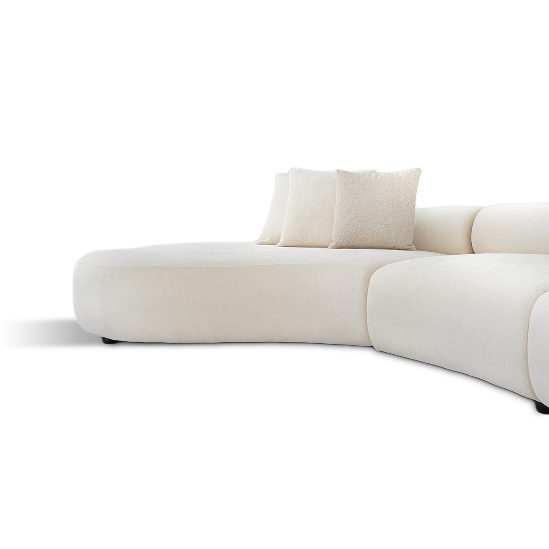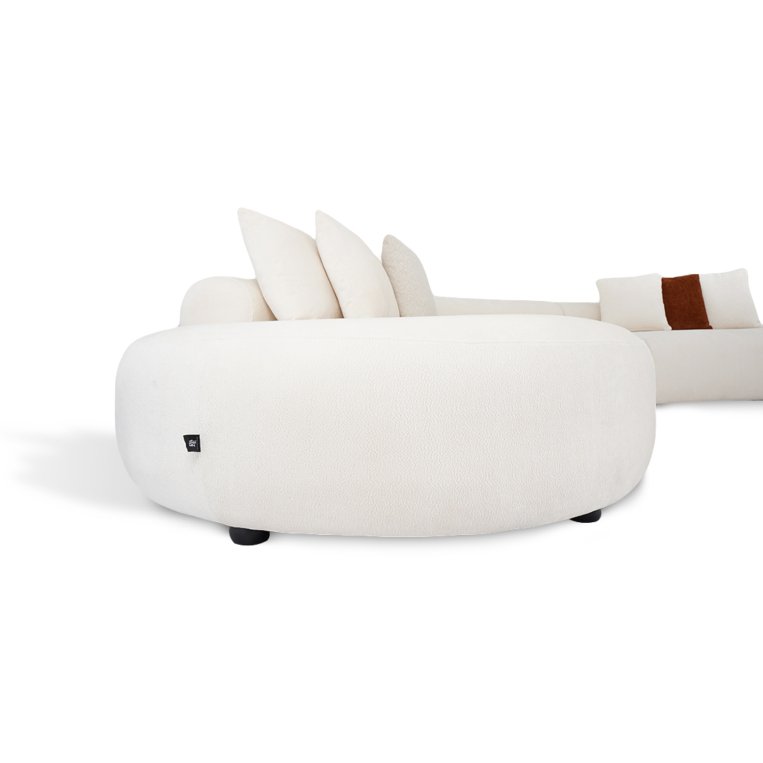 This off-white boucle sofa is everything you need for a cozy space. The soft fabric feels just right, and the black wood base adds a nice touch of contrast without overwhelming the room.