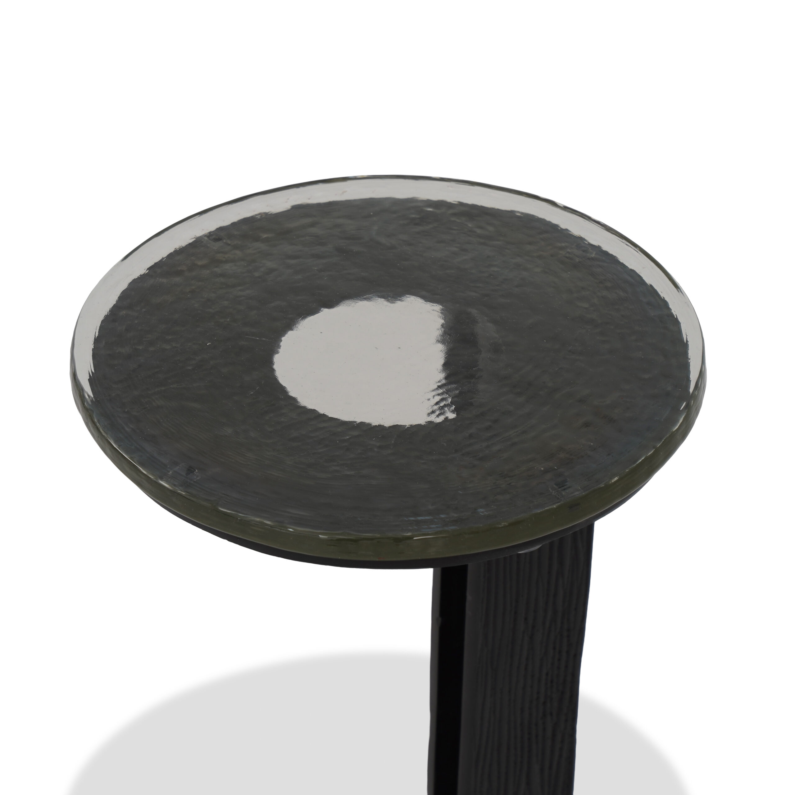 A delicate clear crackled glass and lead-finish metal set, offering modern elegance and versatile style.