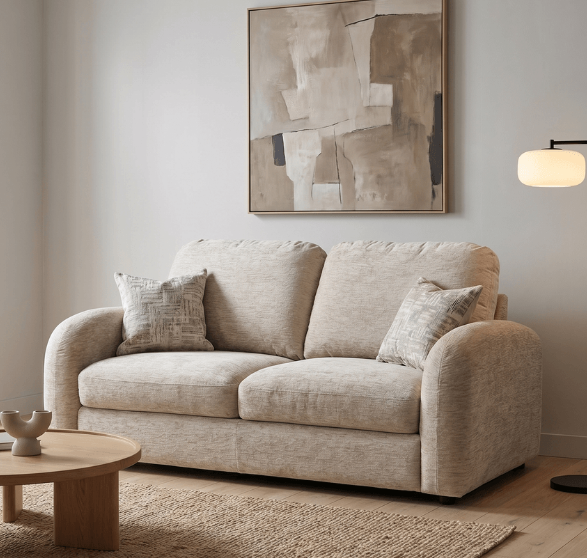 comfortable sofa with a clean, modern silhouette, bringing warmth and understated elegance to any living space.