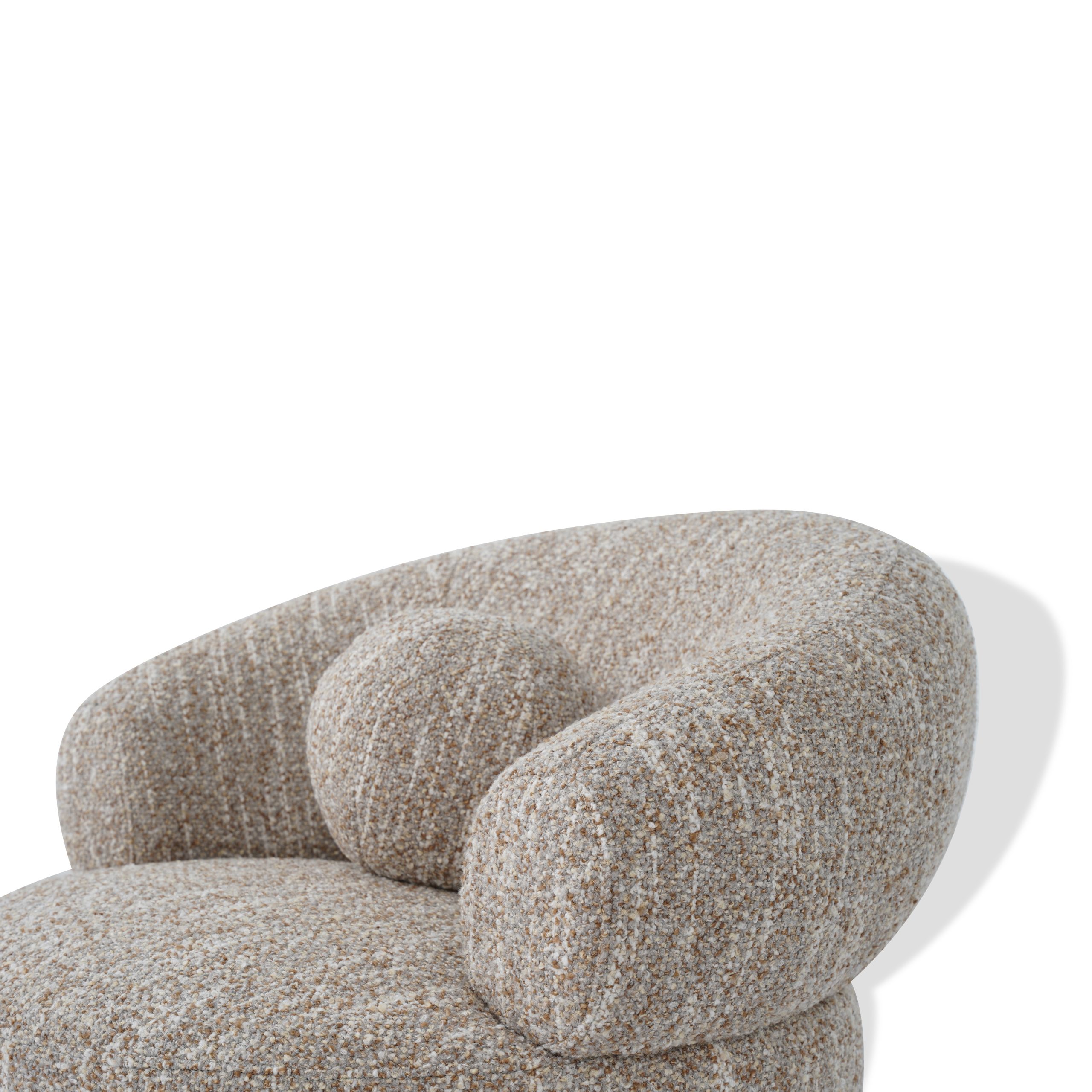 Refined beige linen wool armchair with a sleek black wooden frame, where timeless elegance meets modern luxury.