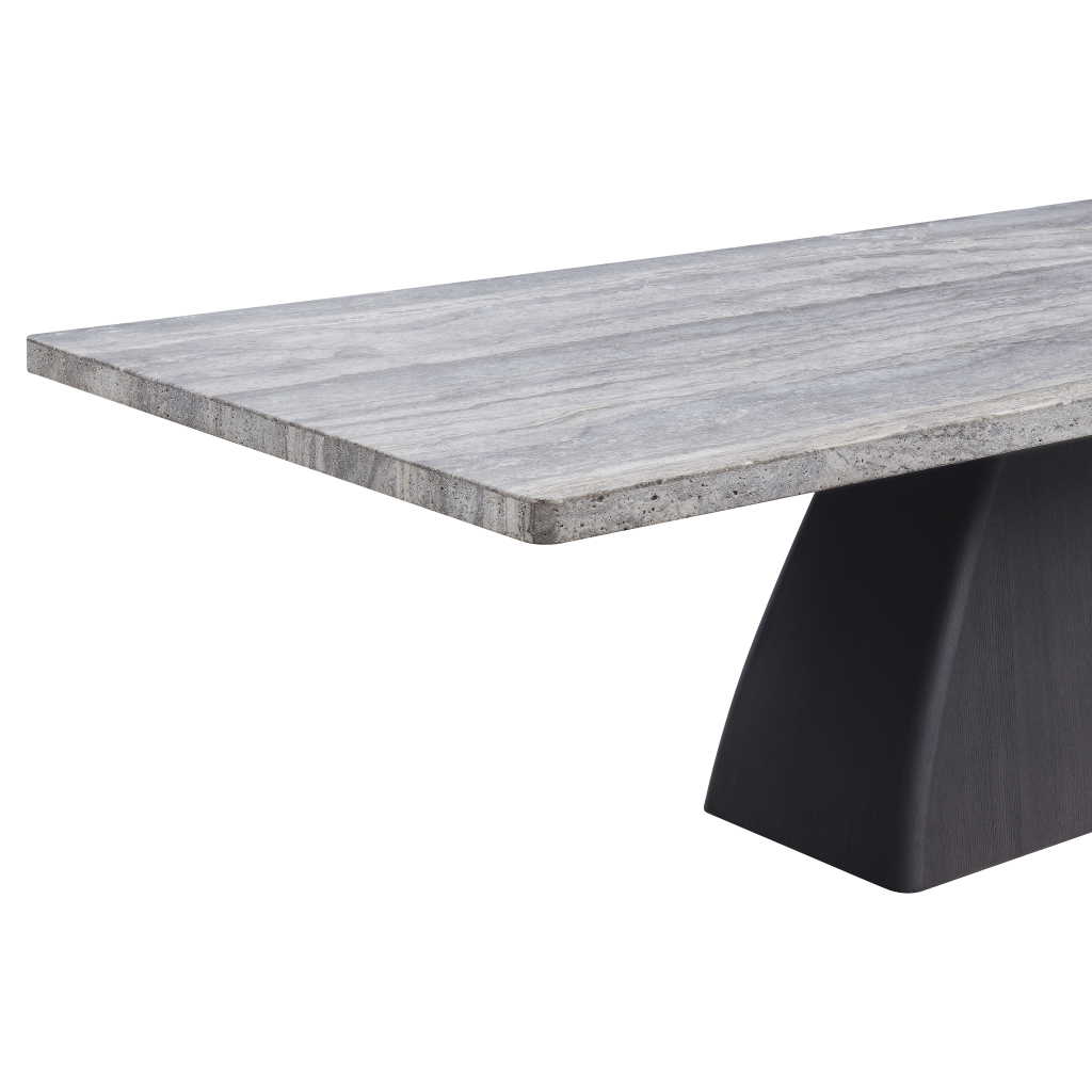 Grey travertine dining table with smoked ash wood base. To be wiped with clean water