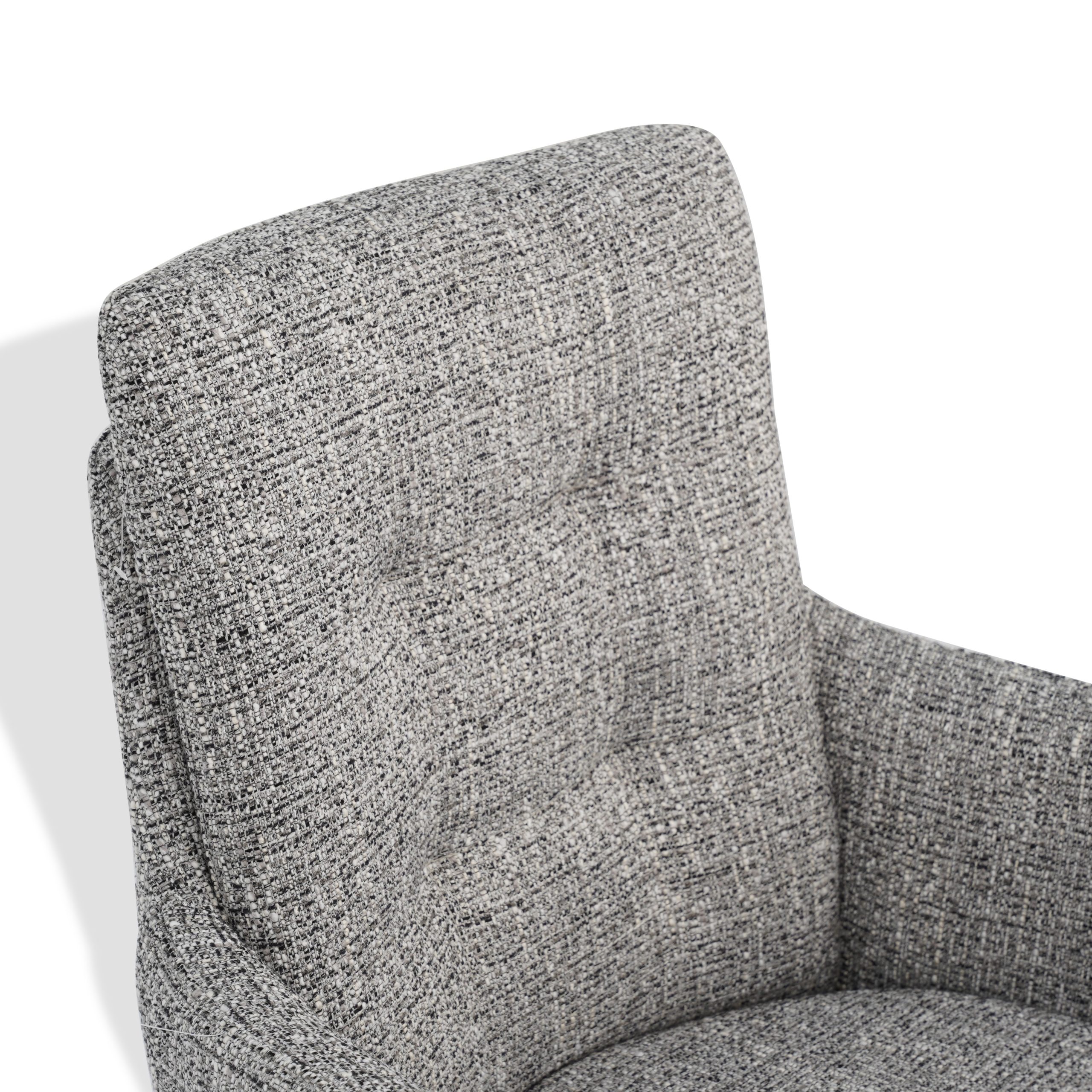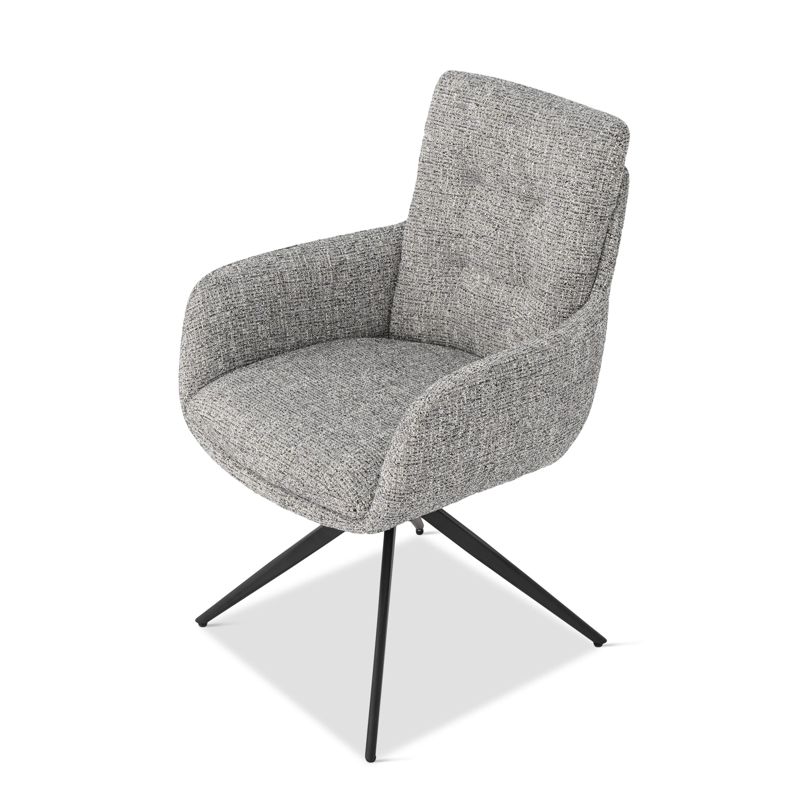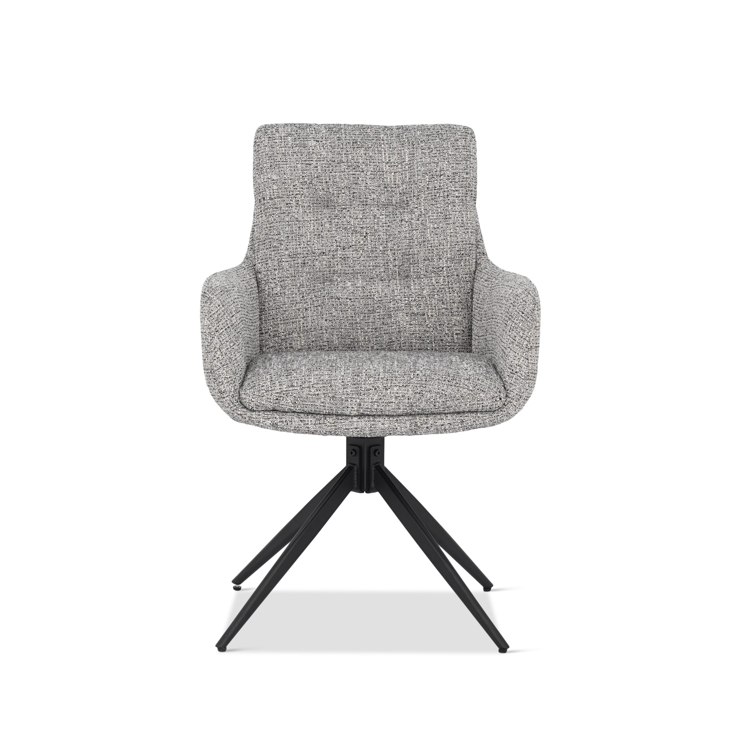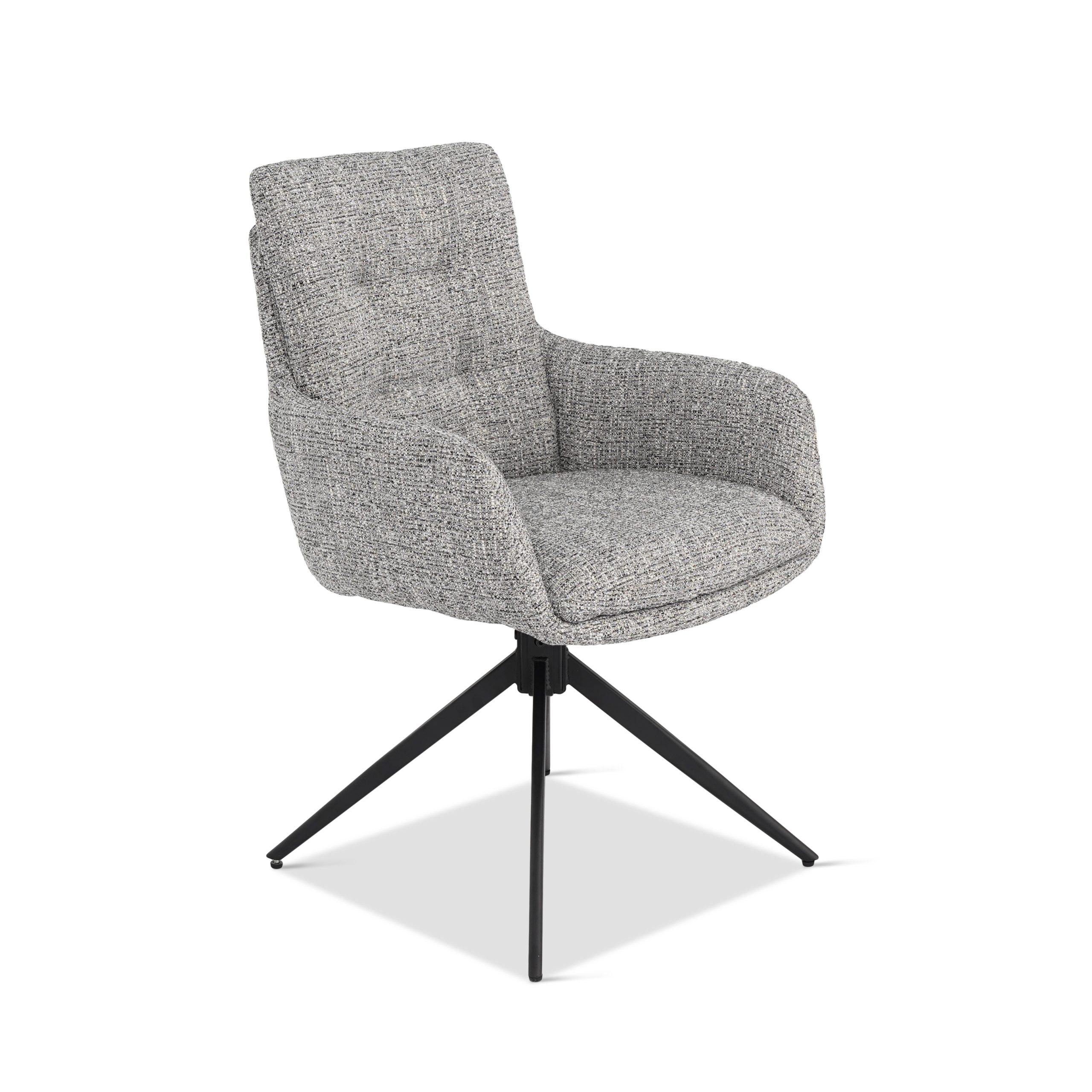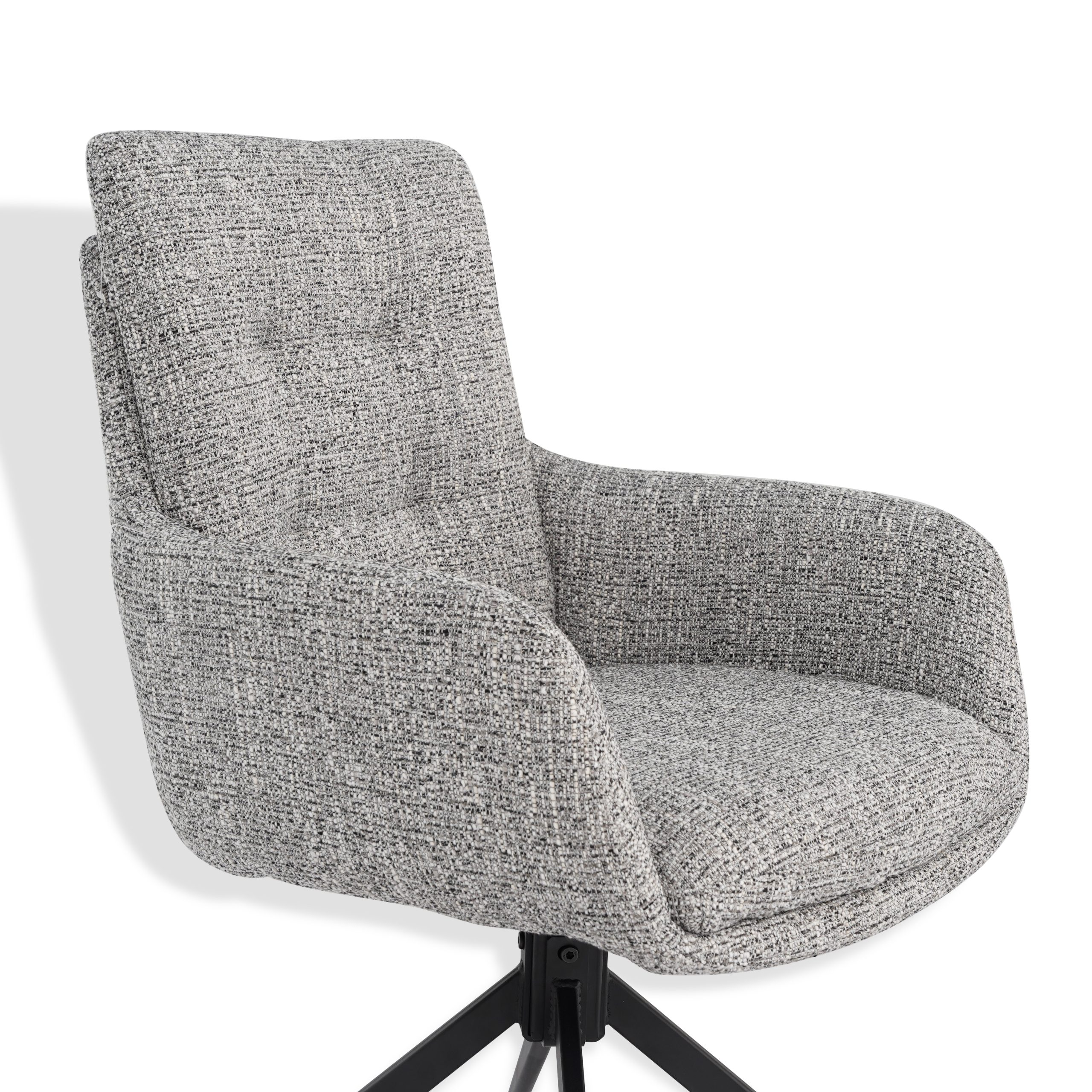 A stylish swivel dining chair blending contemporary elegance with timeless contrast.