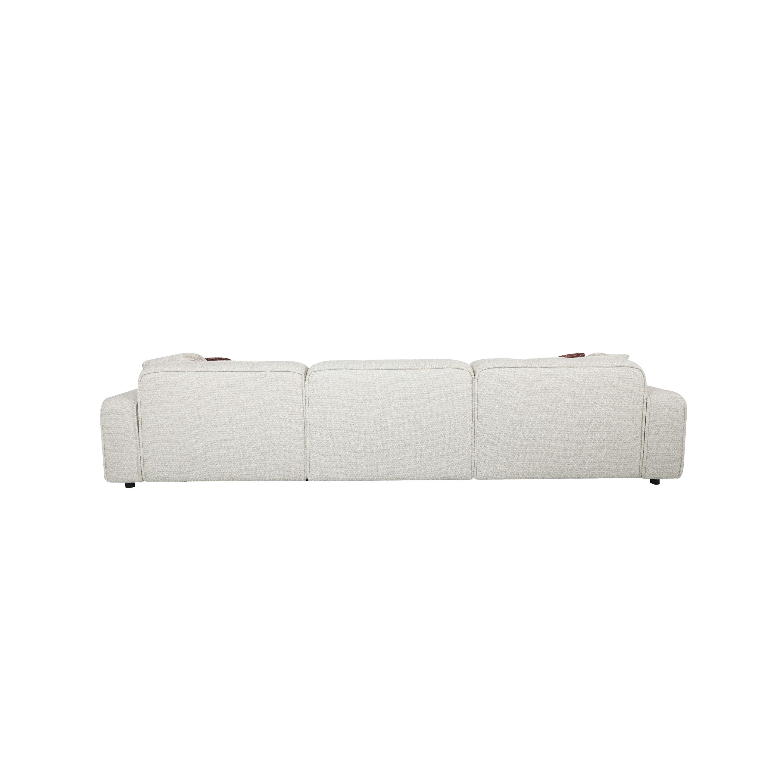 Linen wool effect sofa in off-white with a black hidden base. To be wiped with a soft cloth.
