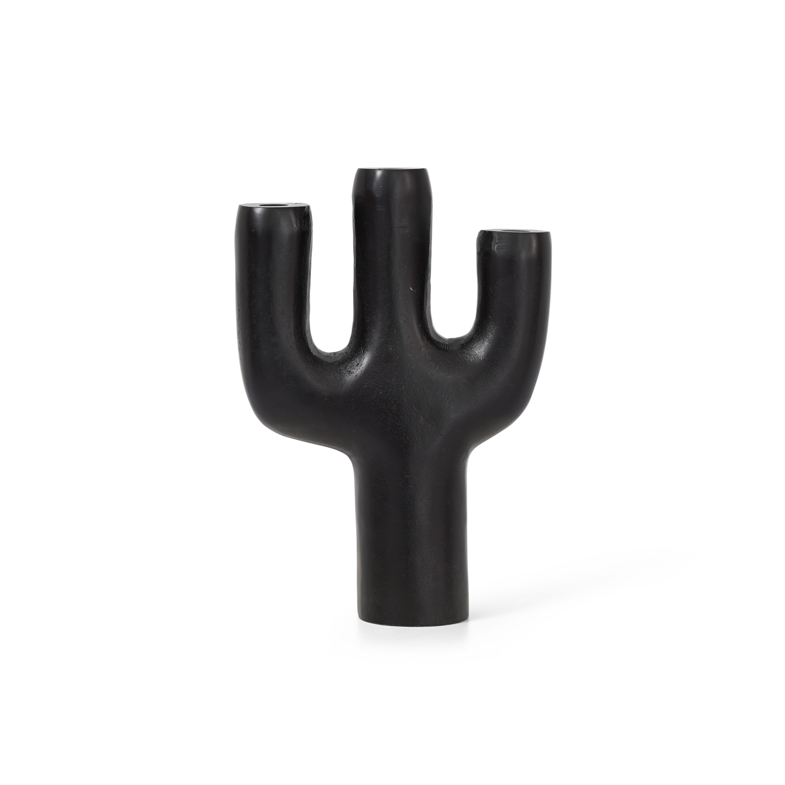 Burnished black metal W-shaped candle holder