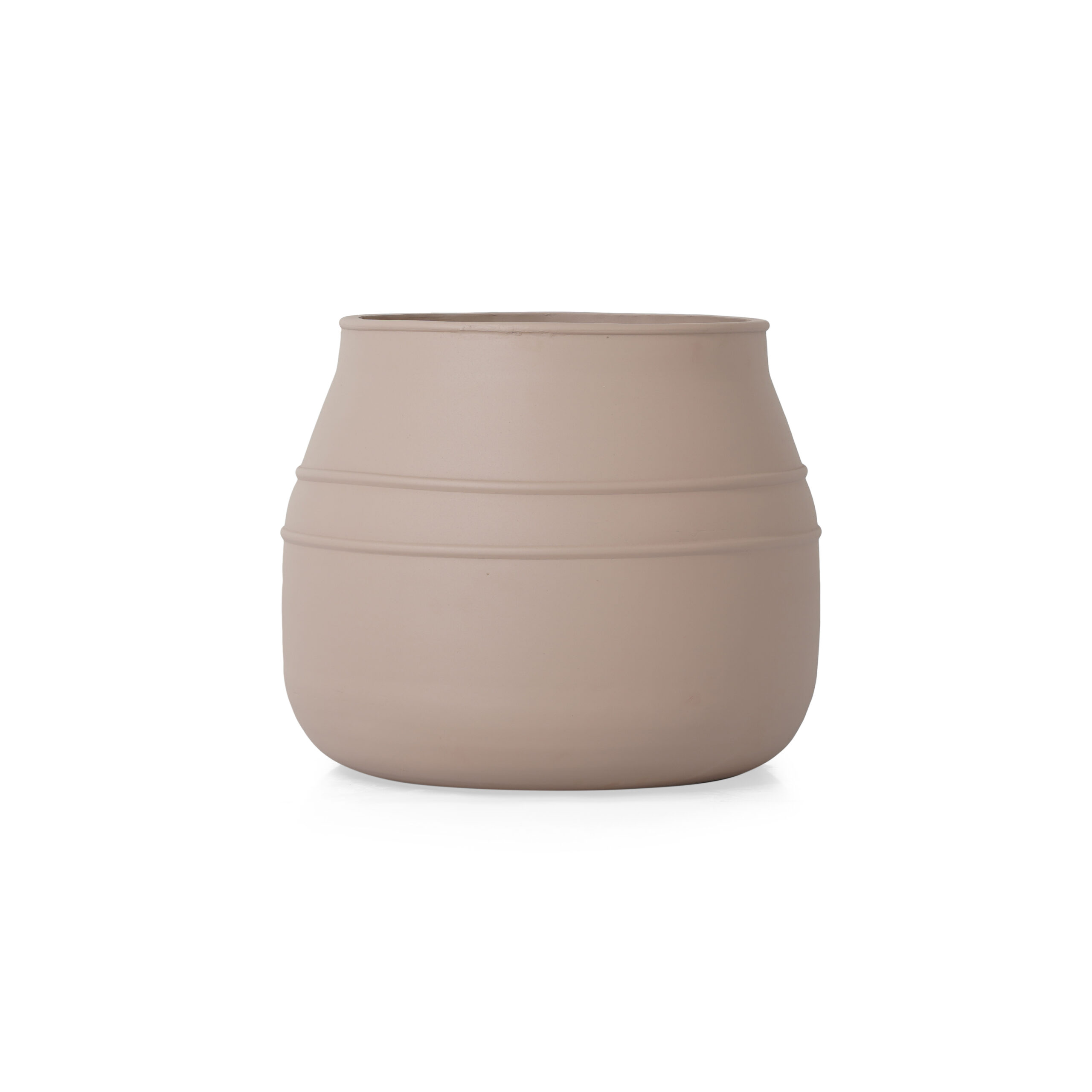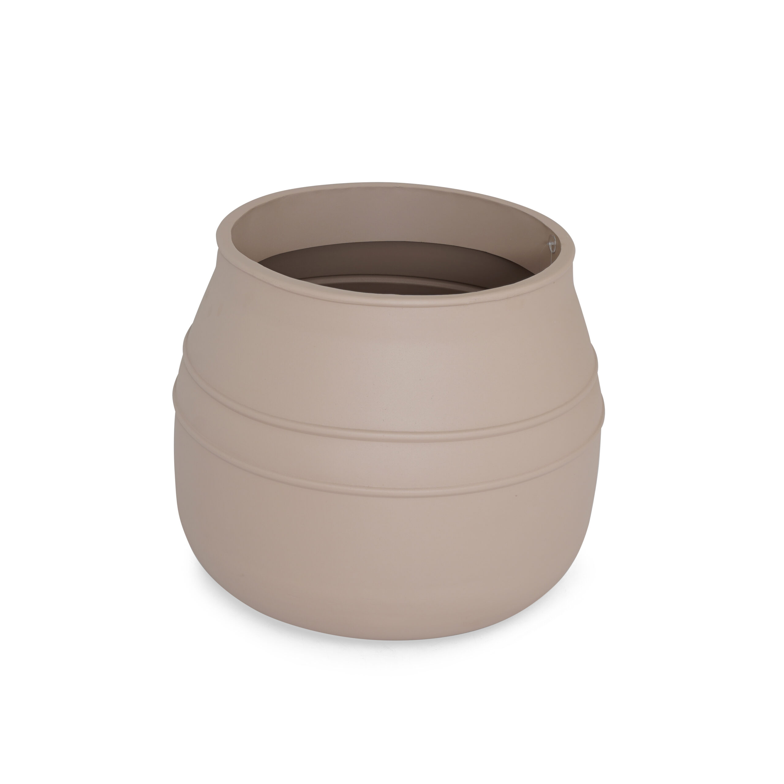 Large Round Beige Metal Planters with a beige texture