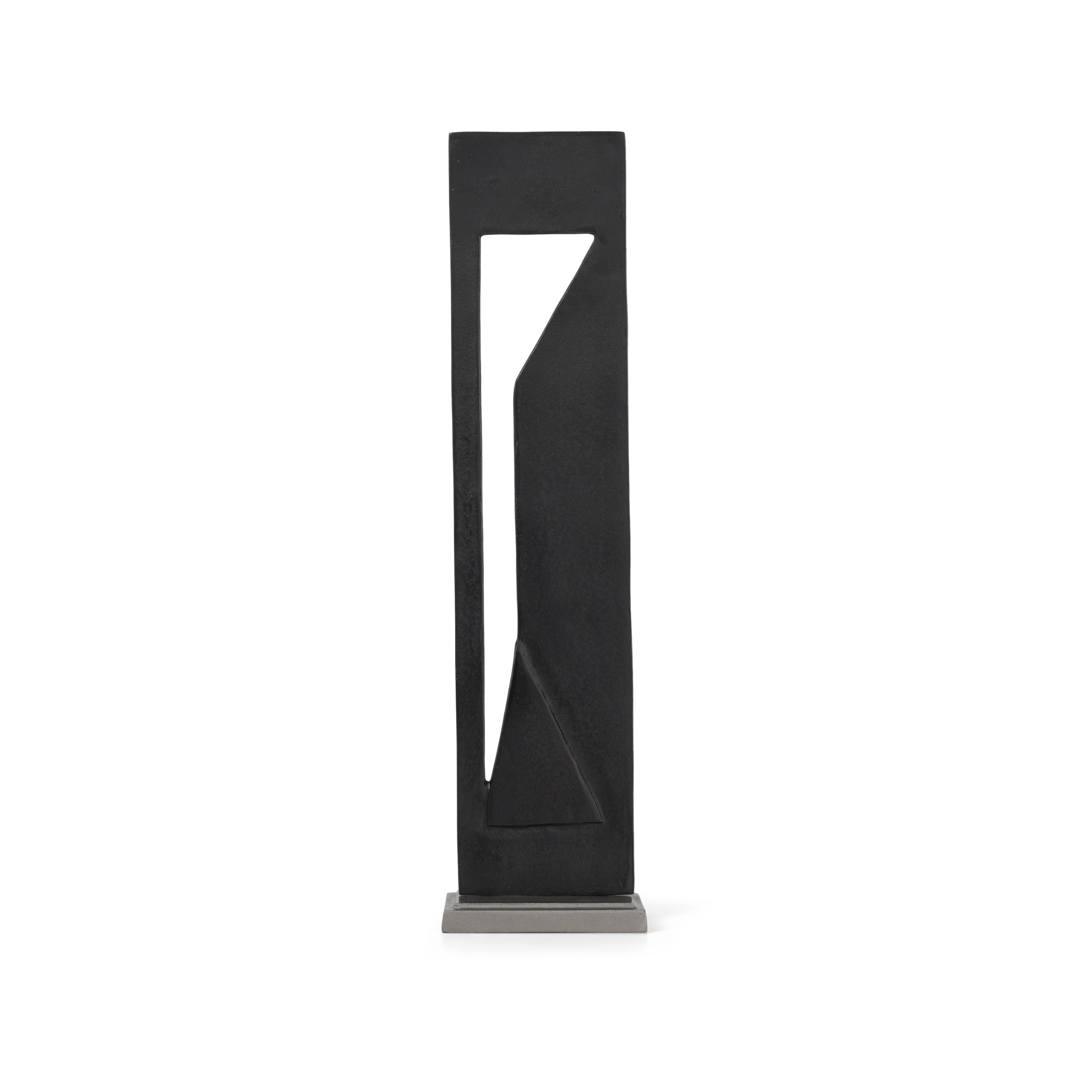 Burnished black metal geometric accessory with a lead finish metal base