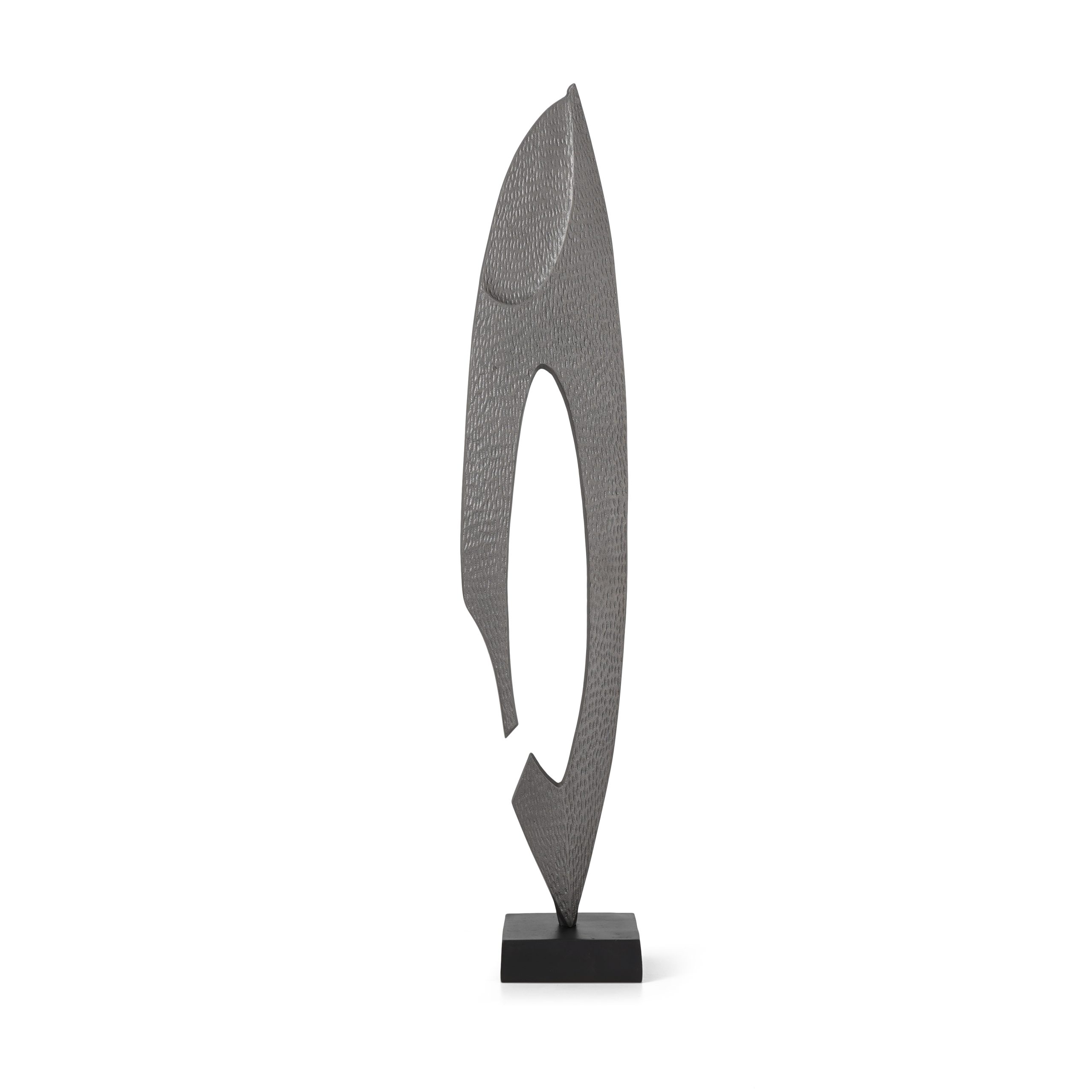 Lead finish metal geometric floor accessory with a burnished black metal base