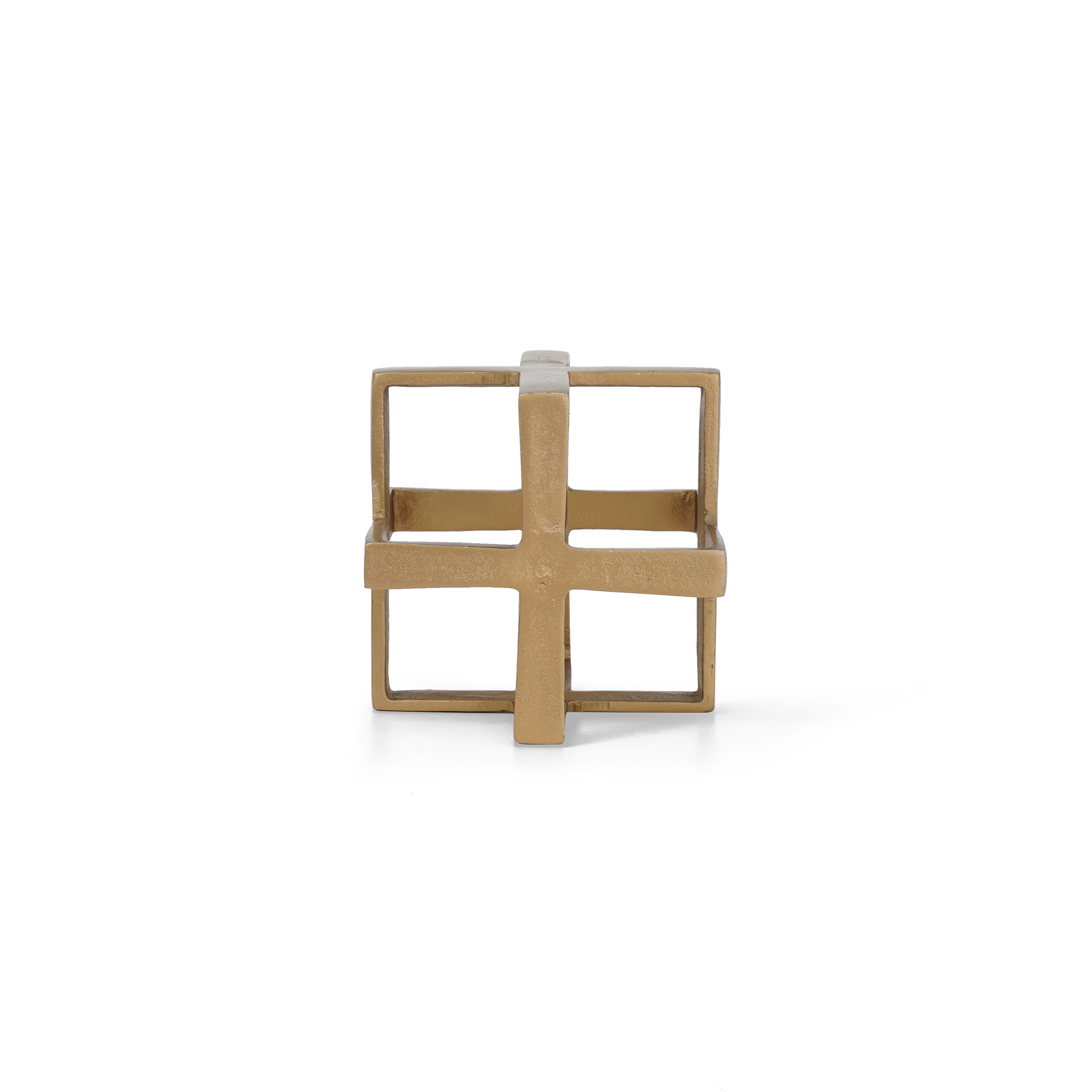 Burnished brass cube metal table accessory