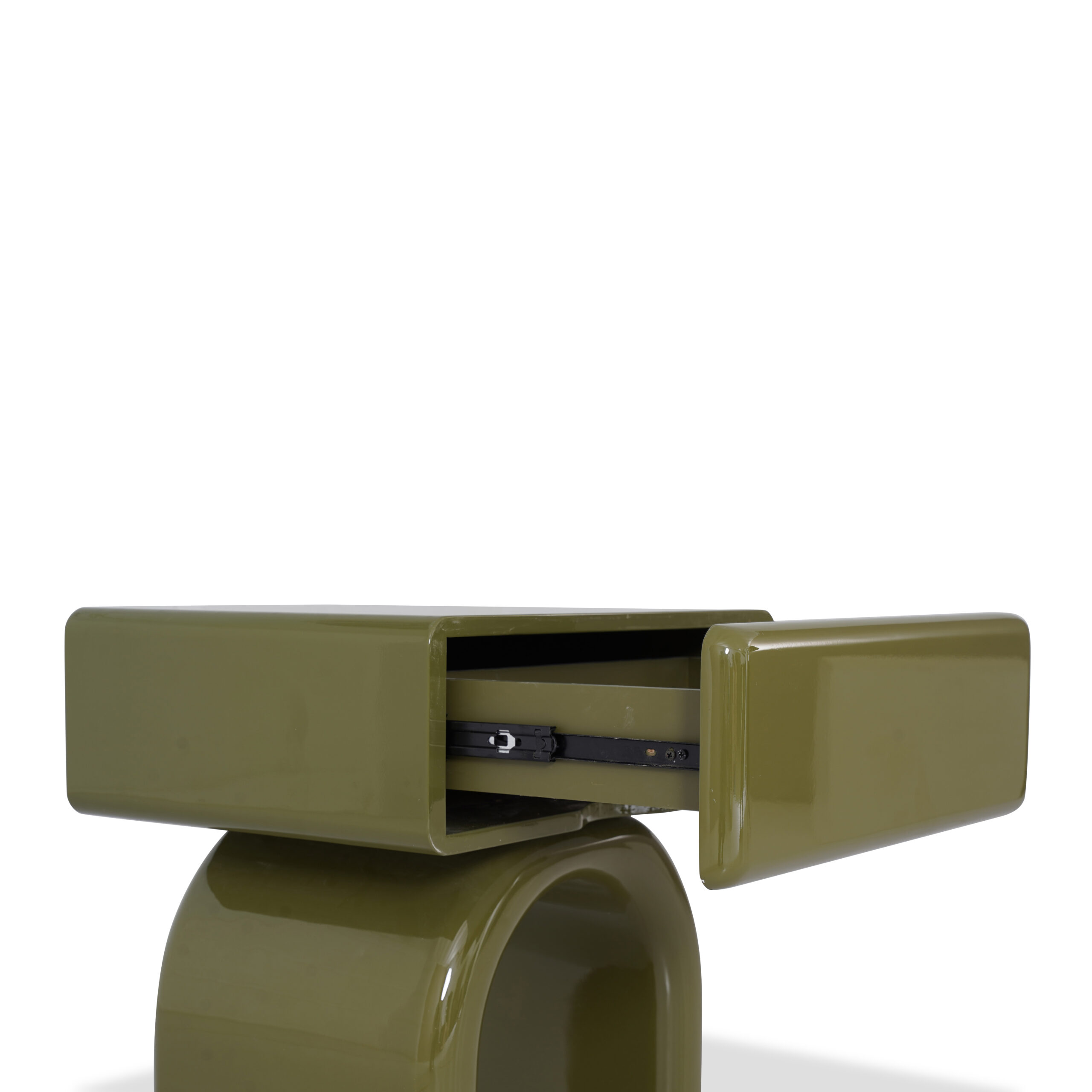 modern nightstand with a smooth lacquered finish, bringing a refined and elegant touch to the bedroom.