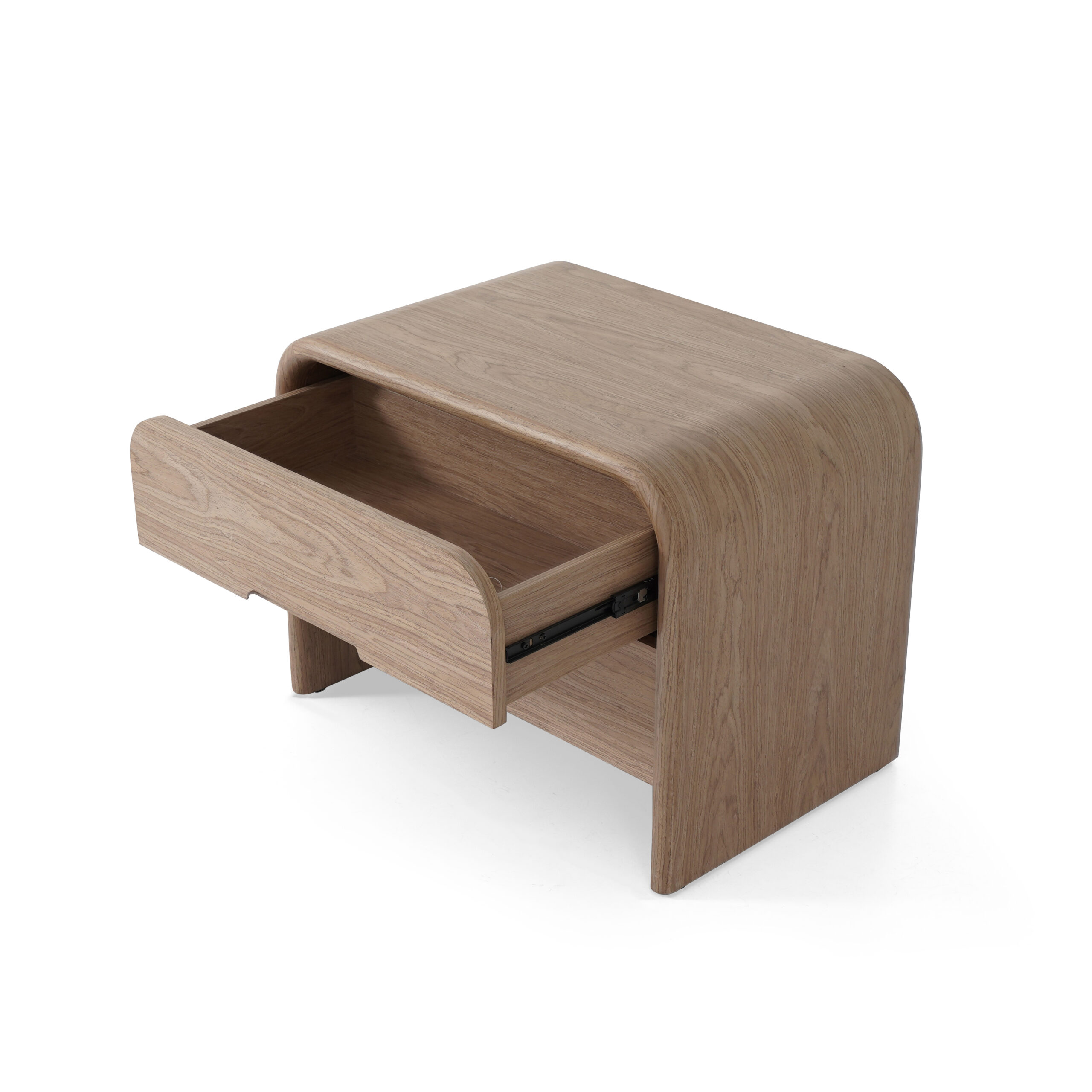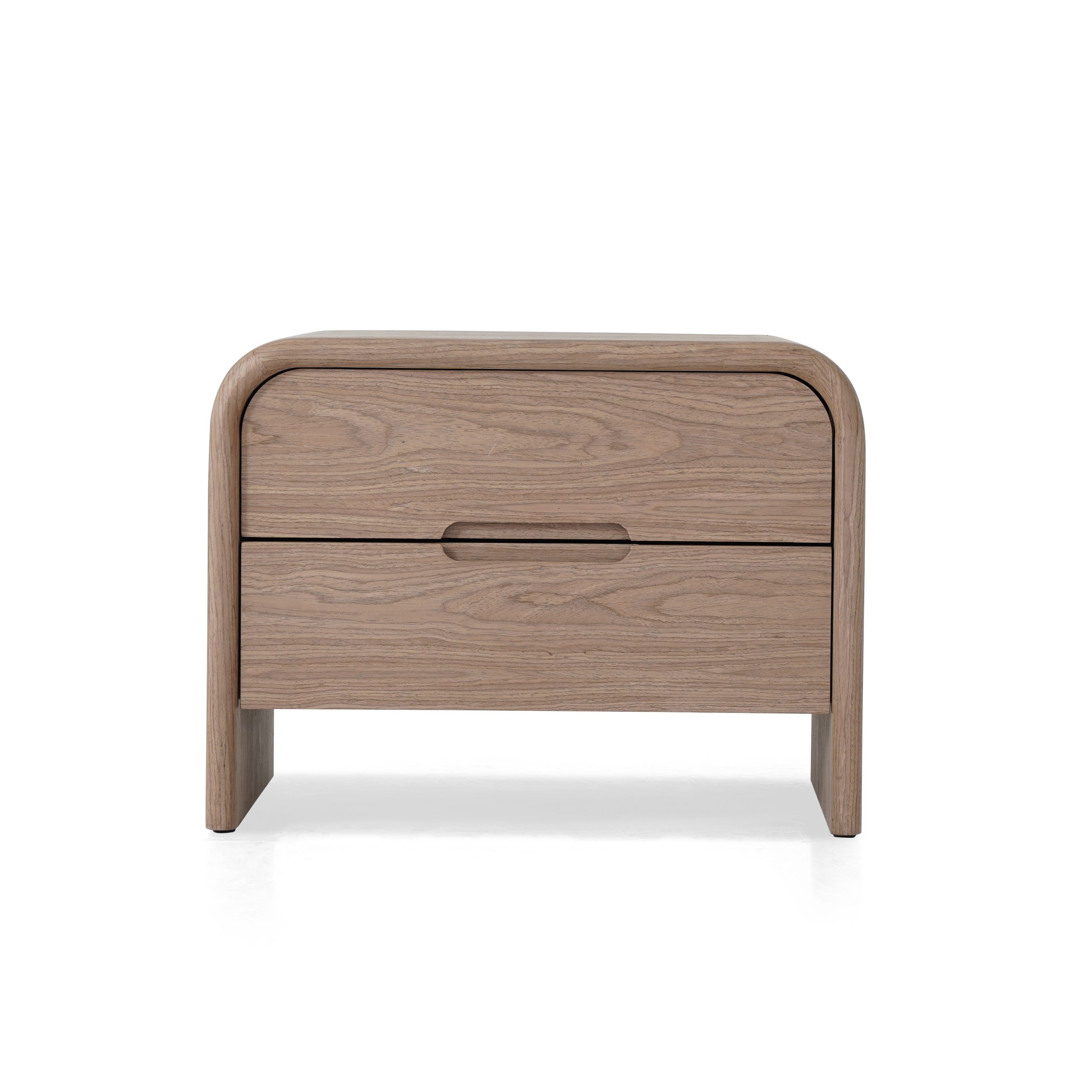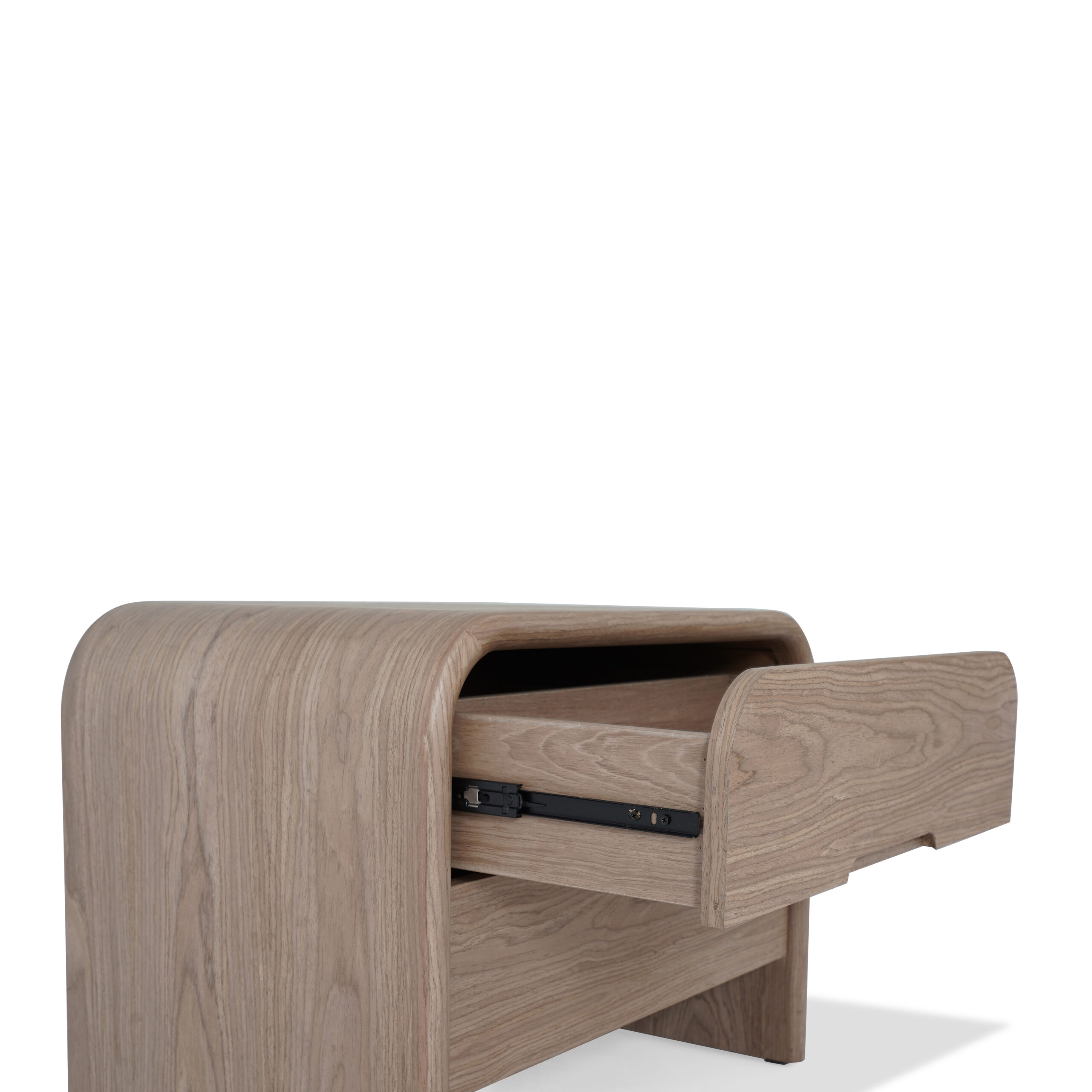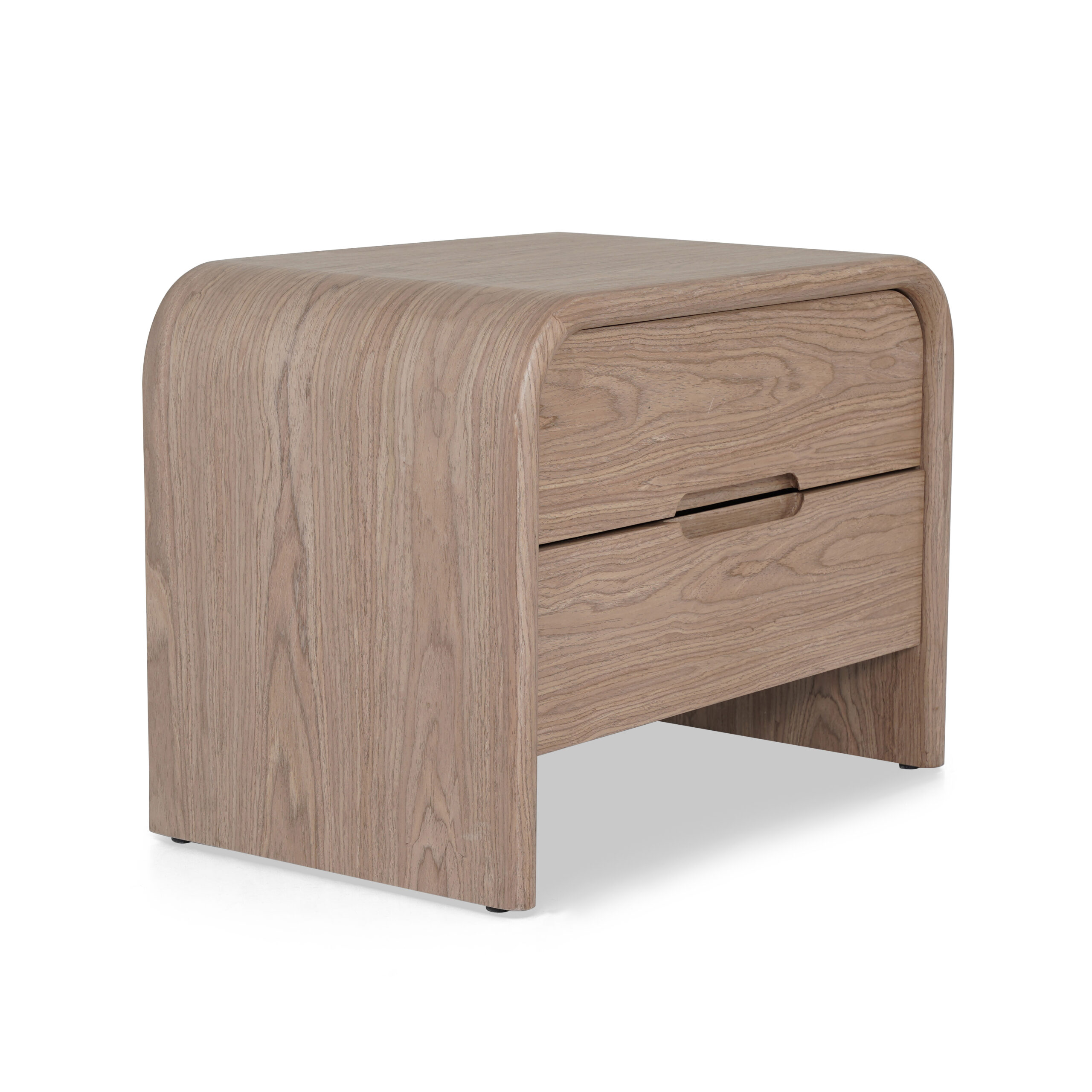 sophisticated nightstand with a clean, modern design, adding warmth and understated elegance to the bedroom.