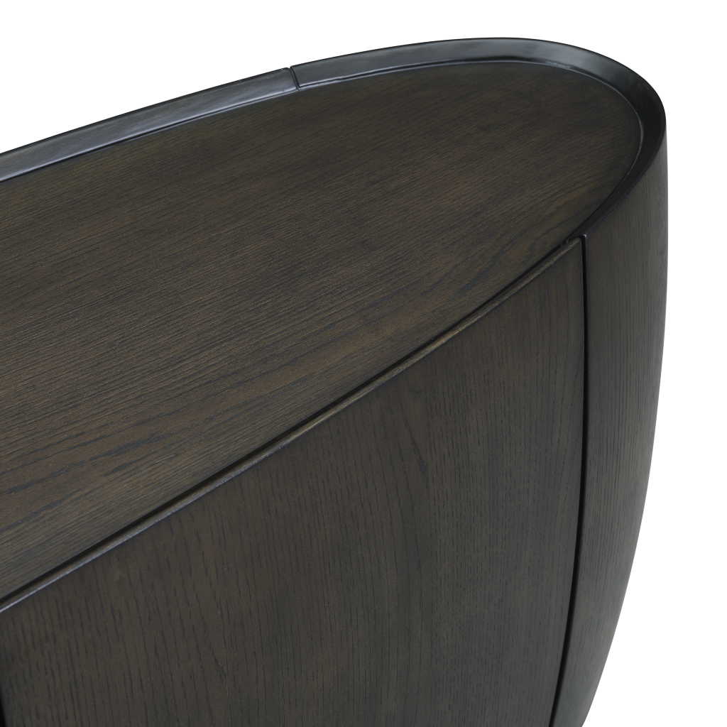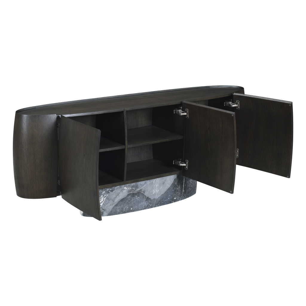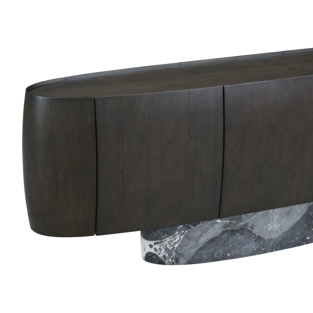 Smoked ash wooden sideboard with phantom grey marble base. To be wiped with a soft cloth