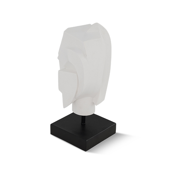 Abstract white resin sculpture with black metal base