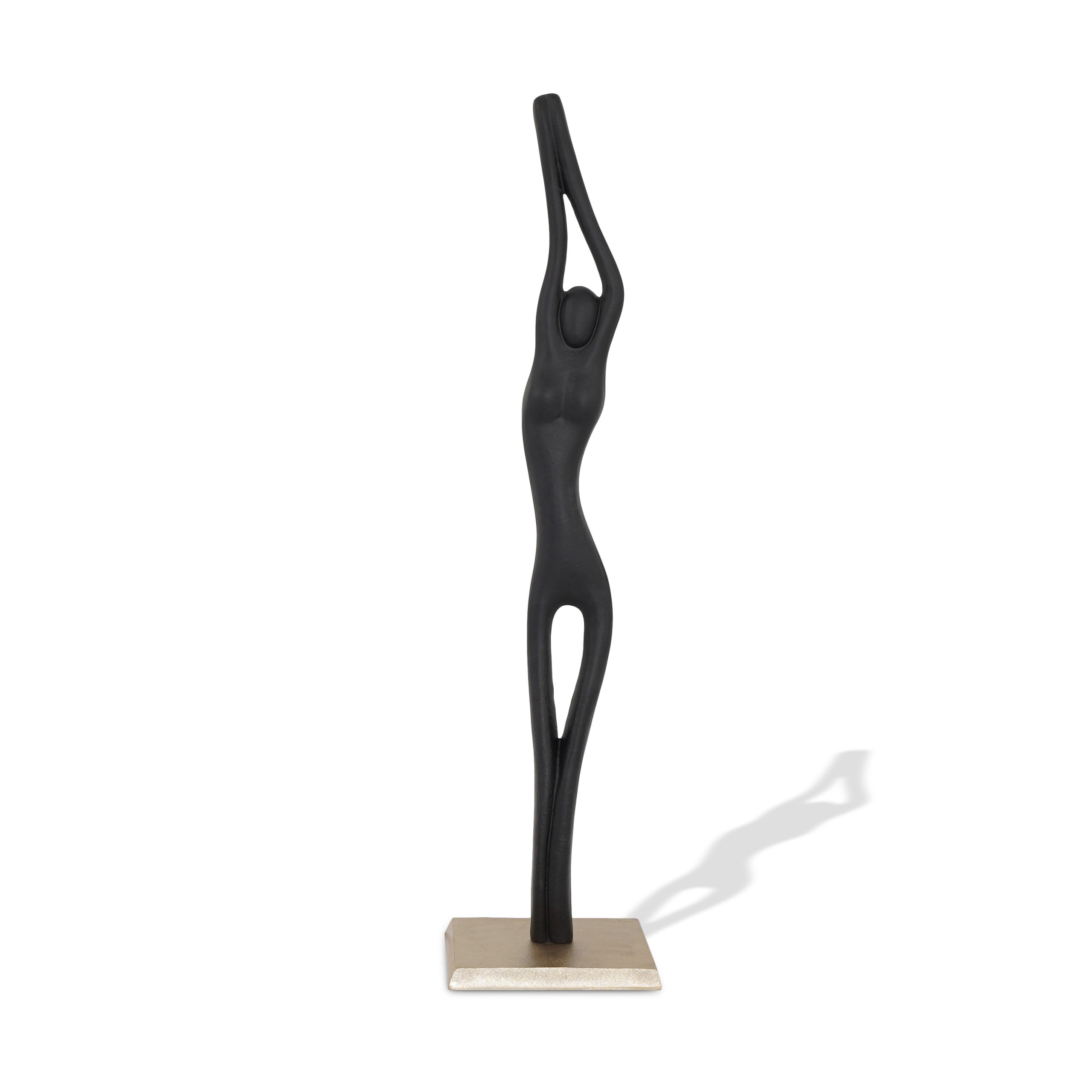 Black powder coated metal statue on a silver metal base