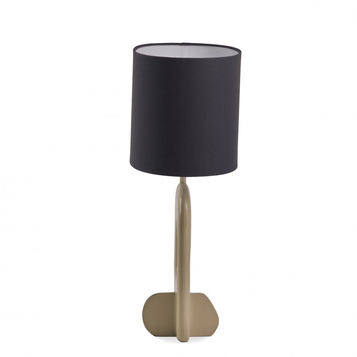 مصباح طاولة بقاعدة من الحجر مع تفاصيل بالذهب المصقول وغطاء باللون الأسود.a