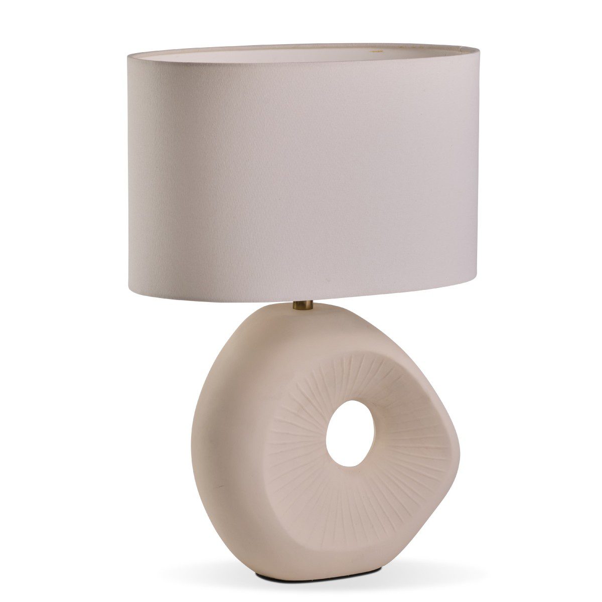White stone organic design base with brushed gold detail ,white shade.