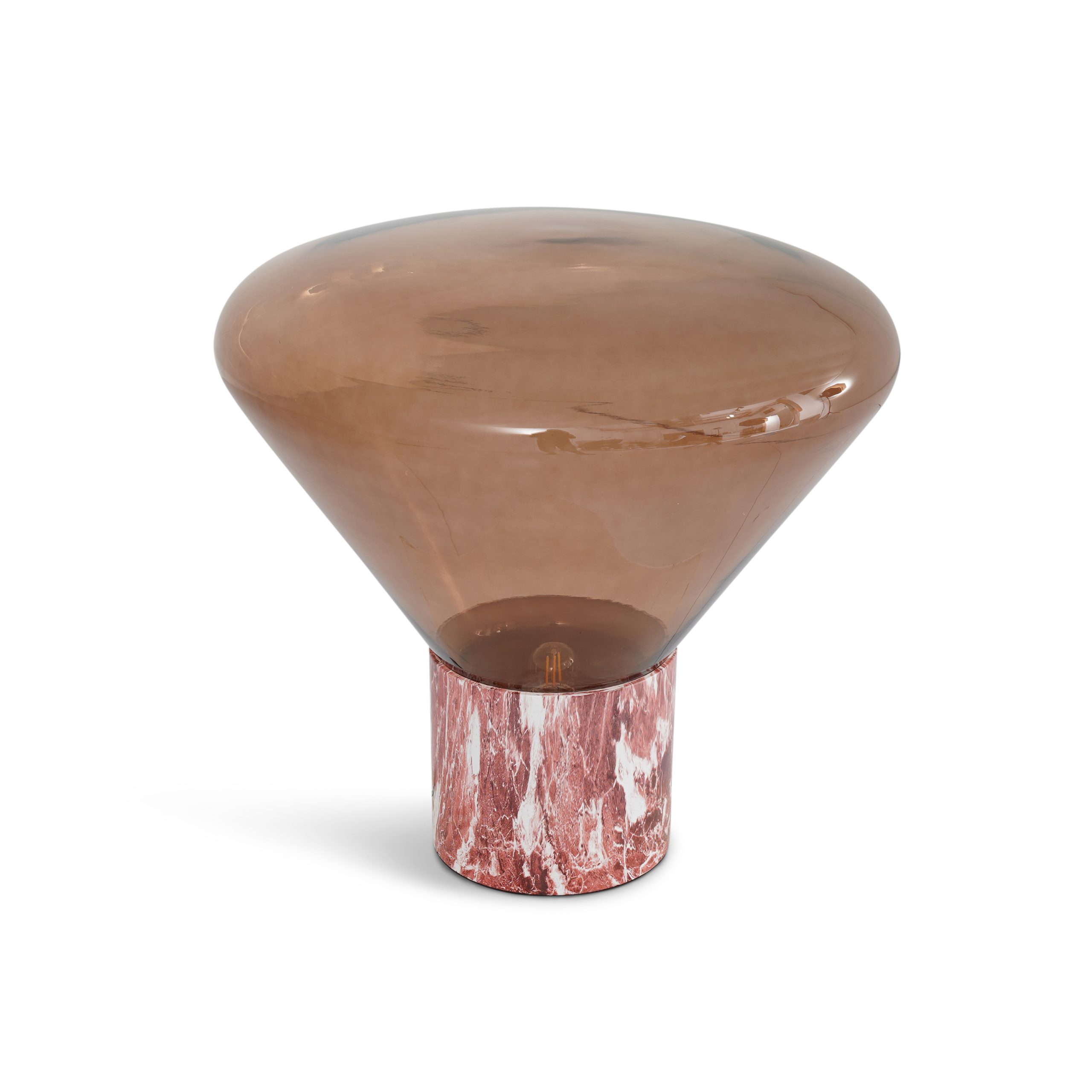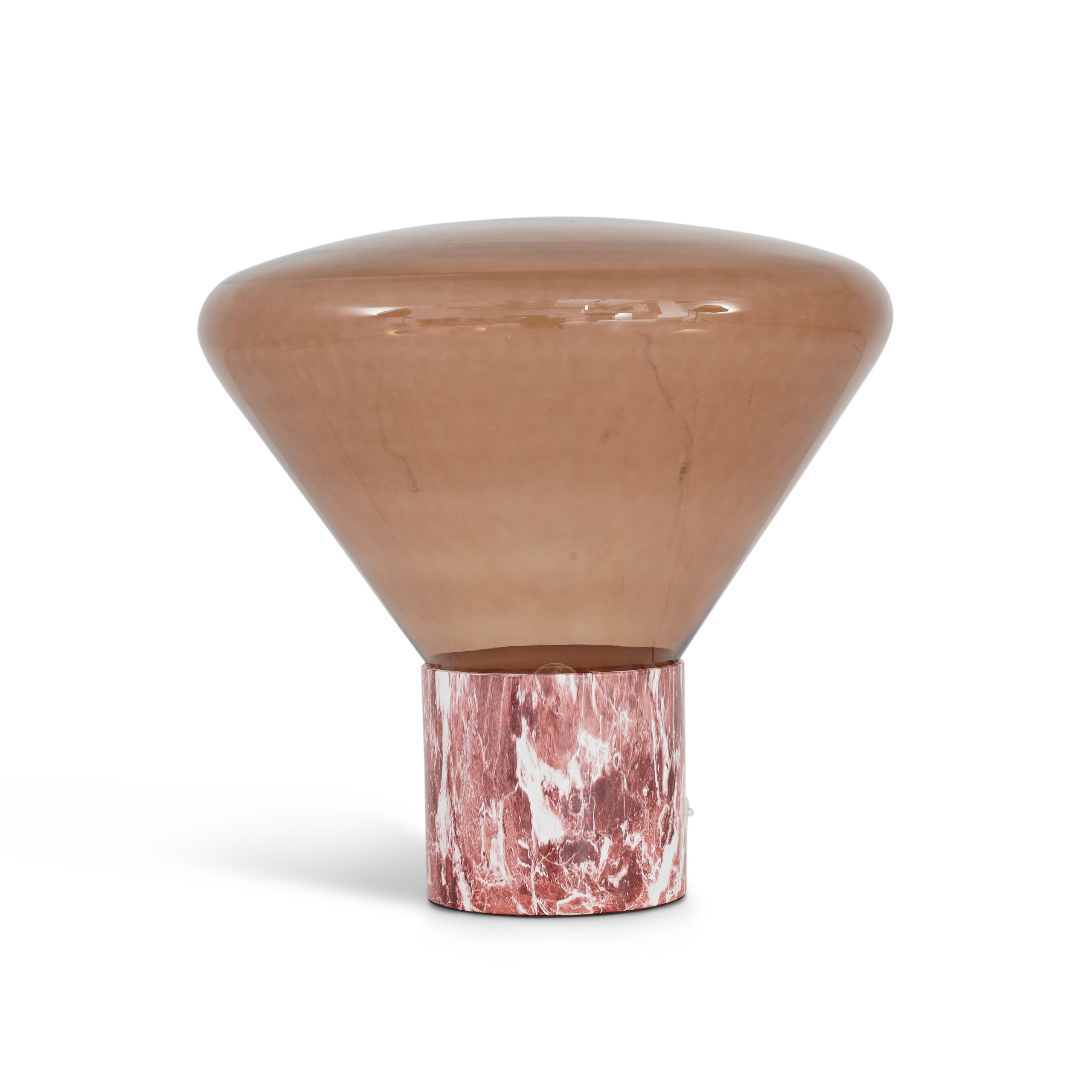 Red marble base with amber glass shade