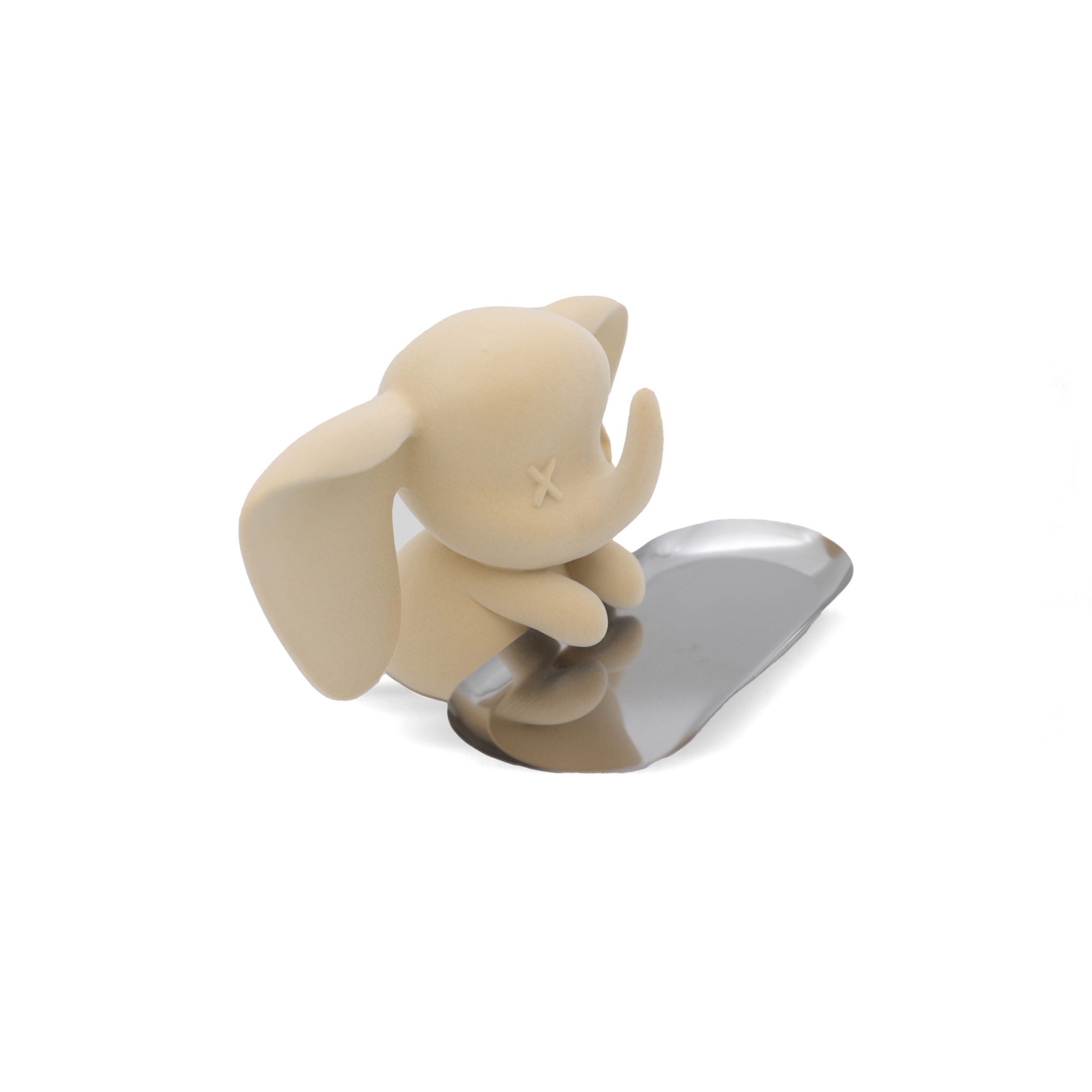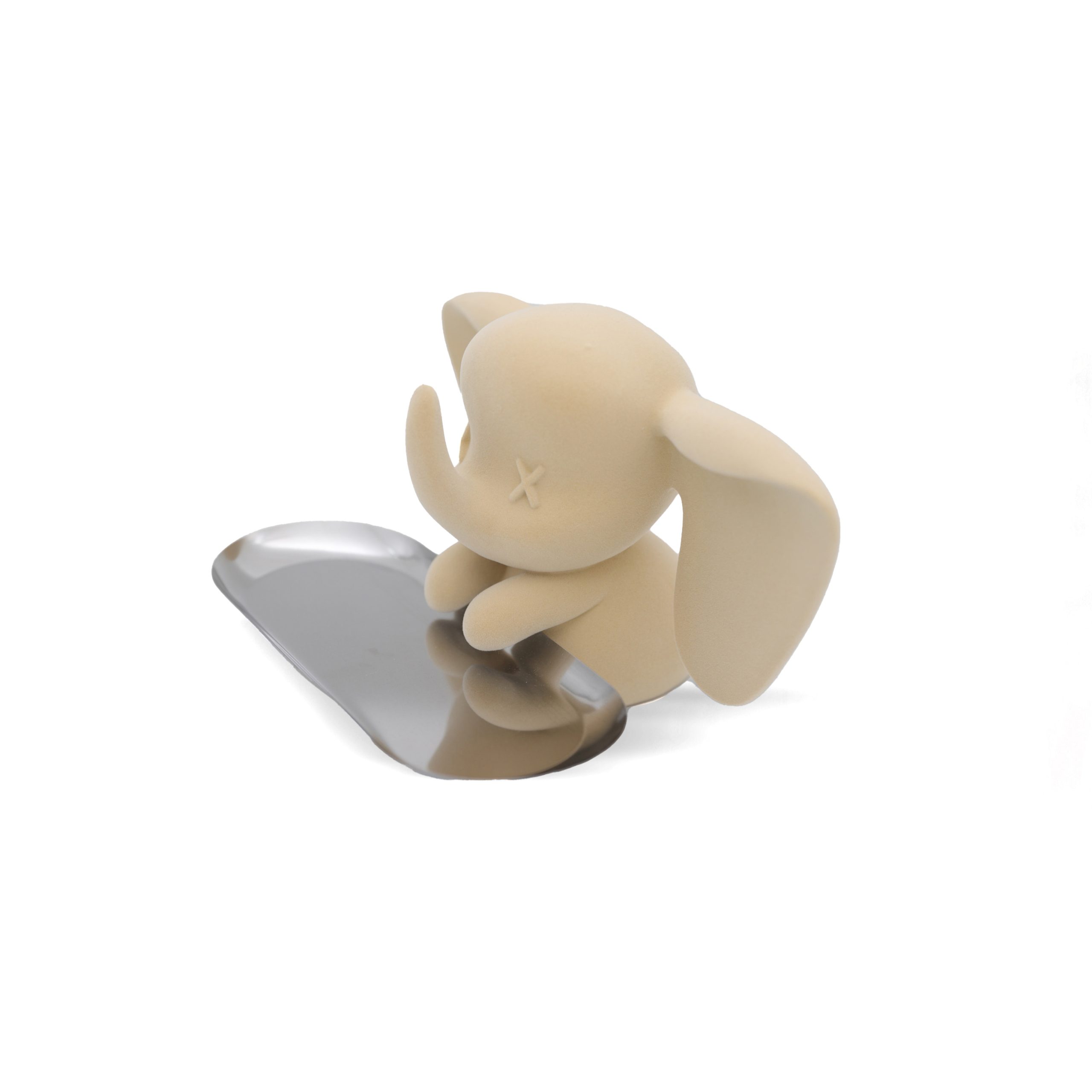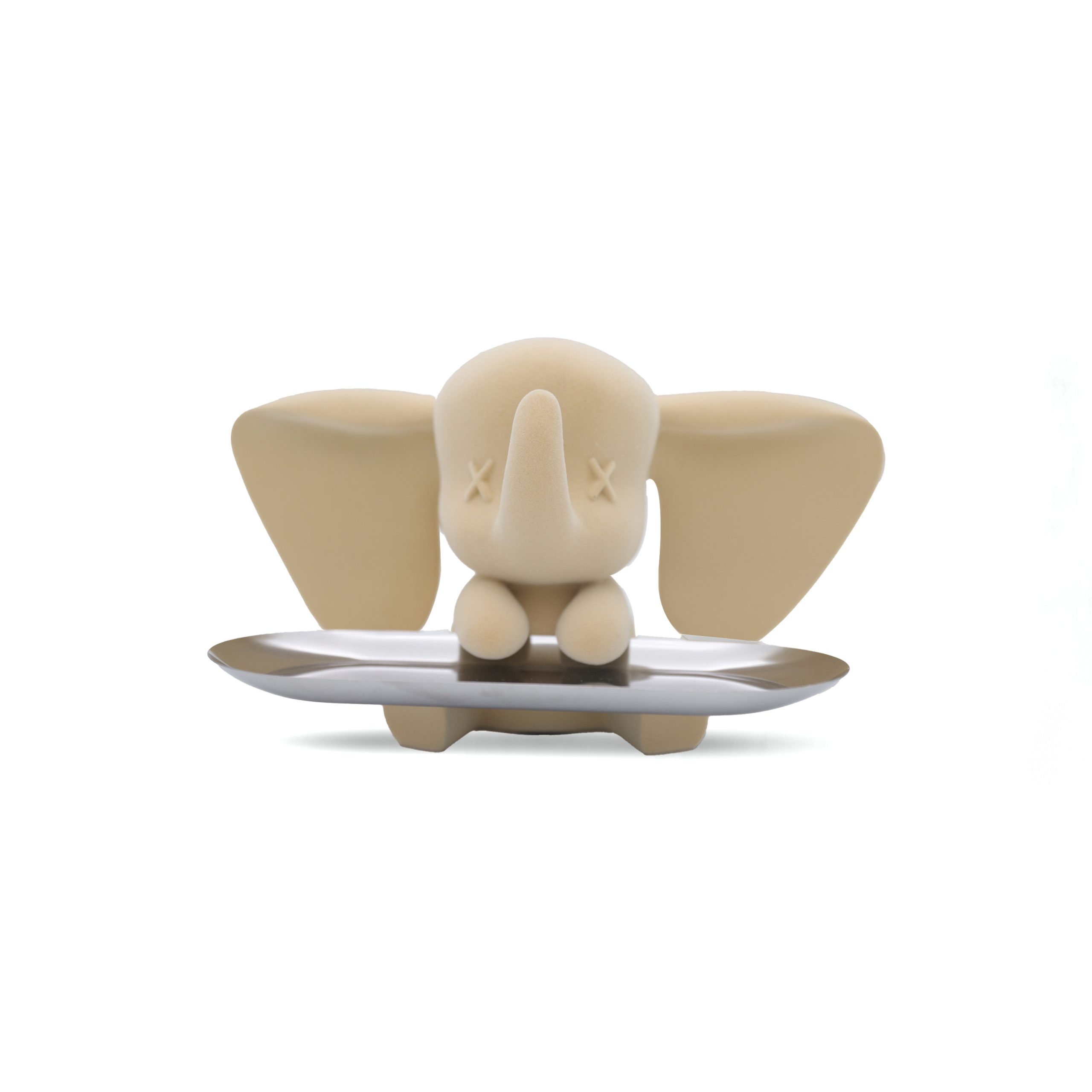 teal elephant with a soft velvet effect, paired with a sleek silver tray that adds a modern and playful contrast.