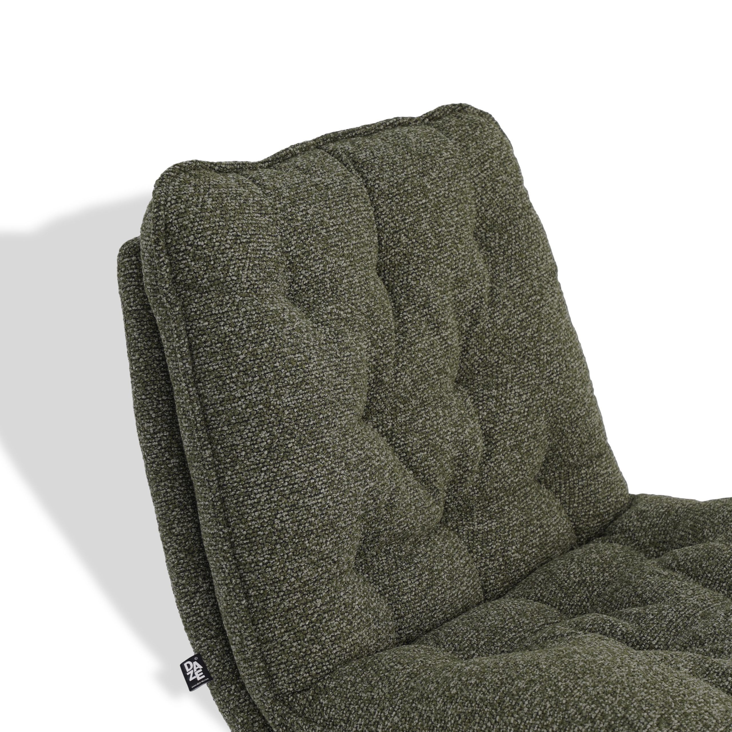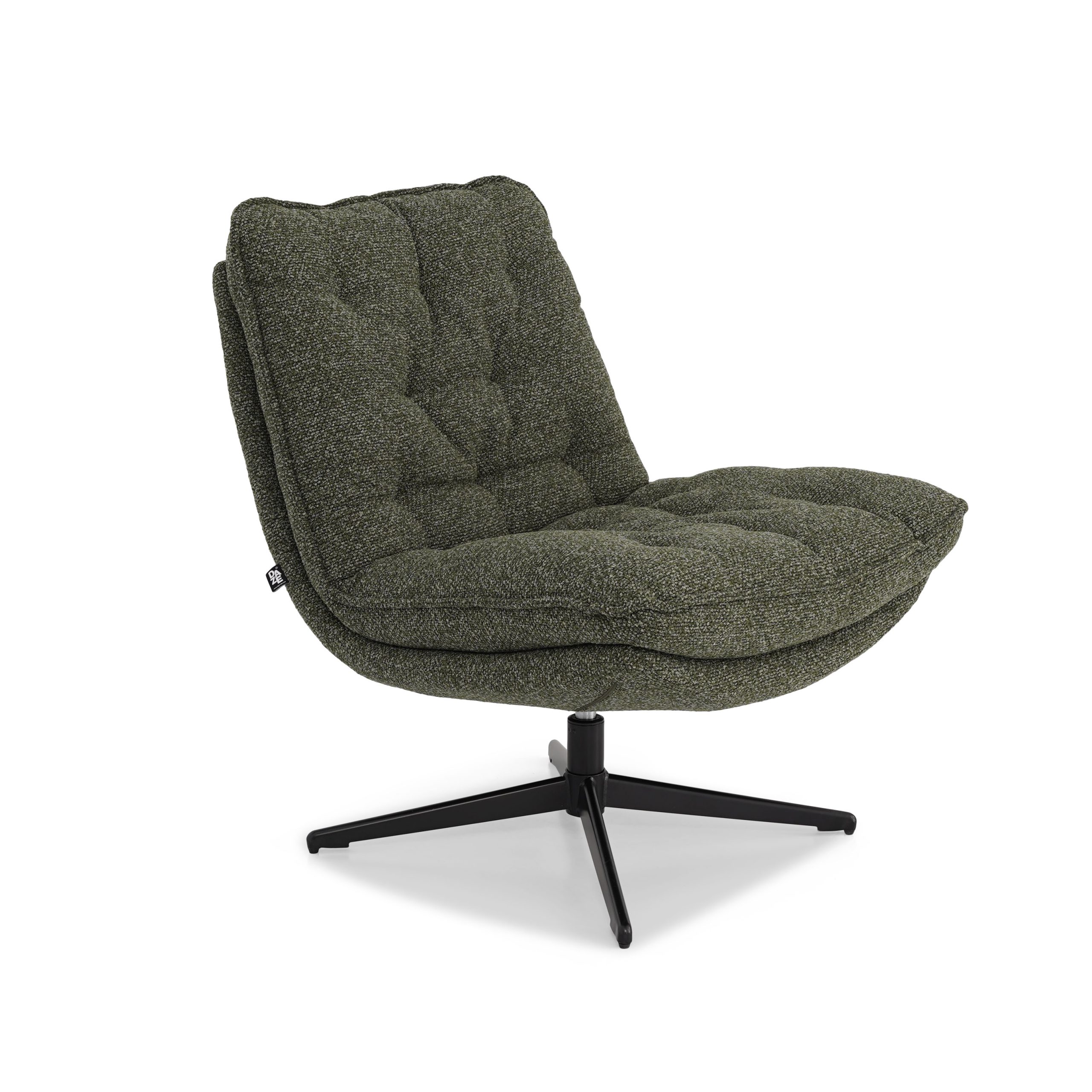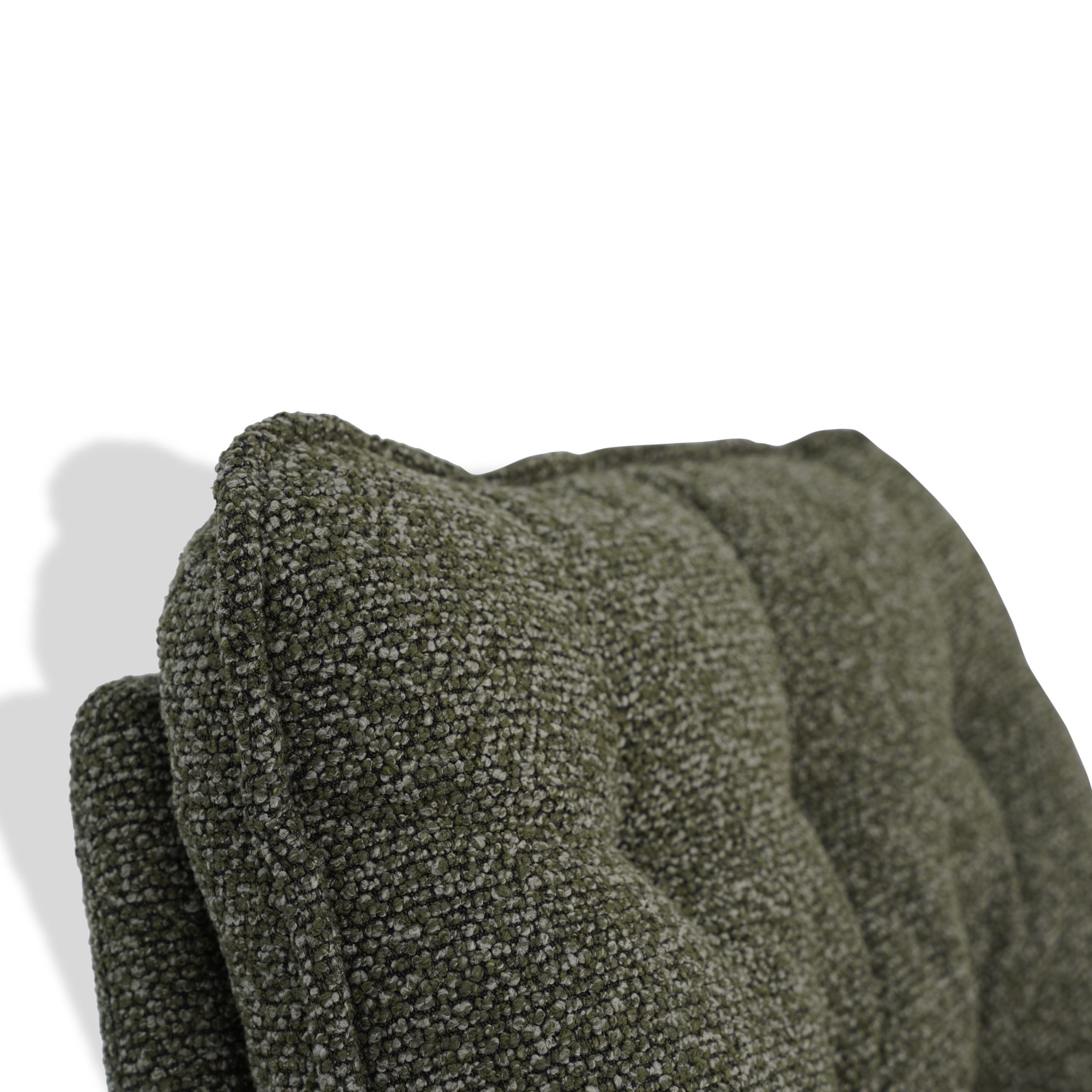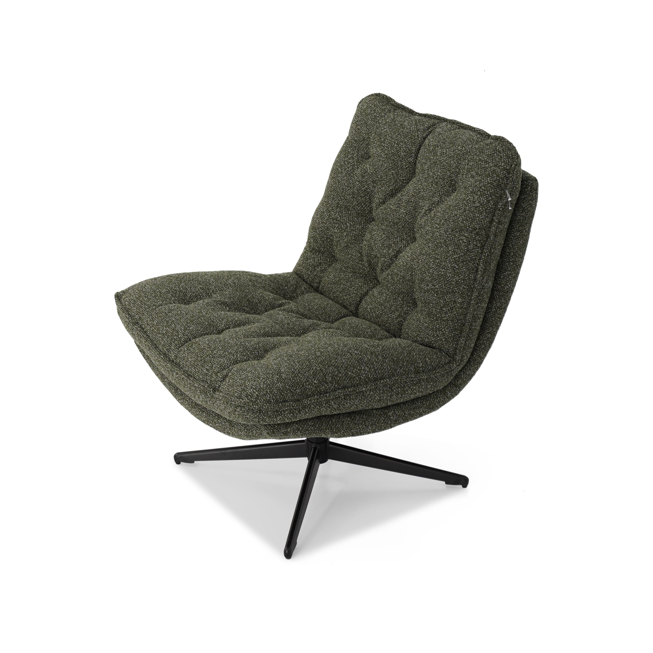 Dark green linen wool effect swivel chair with a black powder coated metal base. To be wiped with a soft cloth.